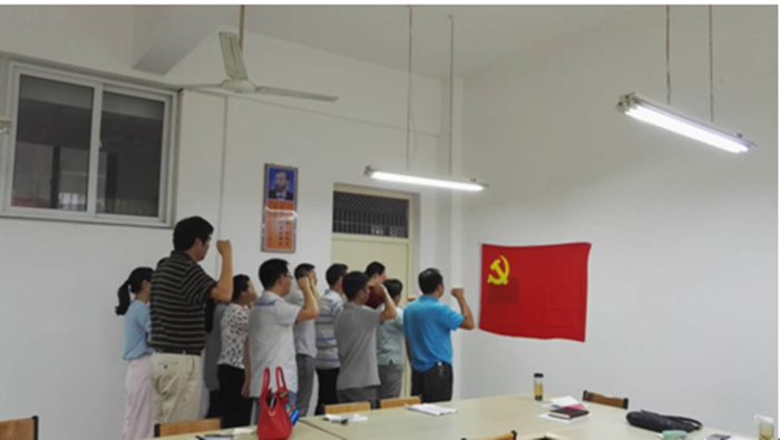 随后,在郭淑红副书记的带领下,全体党员面向党旗,庄严地举起右手,重温了入党誓词。
