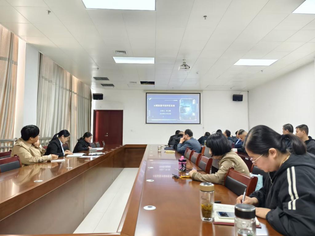 10月29日下午,图书馆在一楼会议室举办了业务知识宣讲交流会。图书馆副馆长徐玉梅结合去天津学习交流的所见所闻,就目前图书馆前沿技术应用和未来发展趋势,以“AI赋能图书馆转型发展”为题,在本次交流会上作业务知识宣讲。