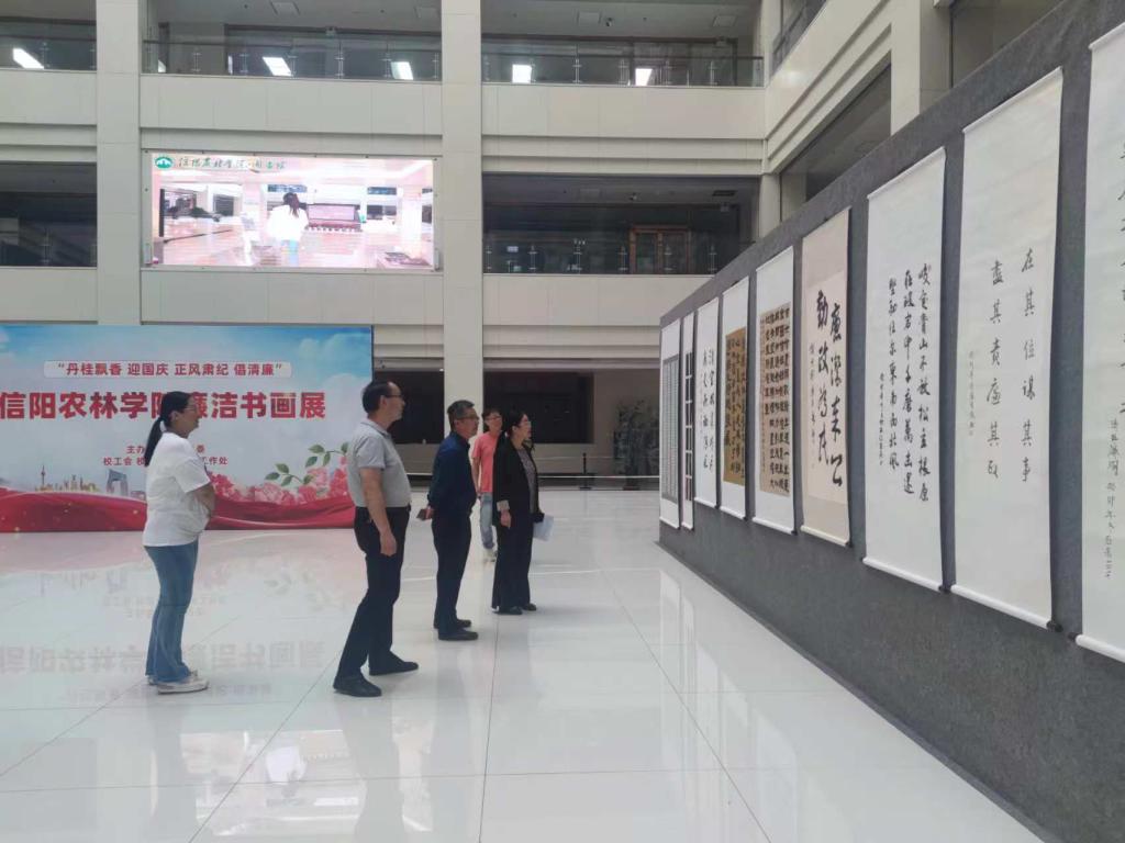 为深入学习贯彻党的二十届三中全会关于“加强新时代廉洁文化建设”的精神,弘扬校园廉洁文化,塑造新时代清朗正气风尚,9月24日,图书馆党总支组织馆内教职工参观了校纪委主办的“丹桂飘香 迎国庆 正风肃纪 偿清廉”主题廉洁书画展。