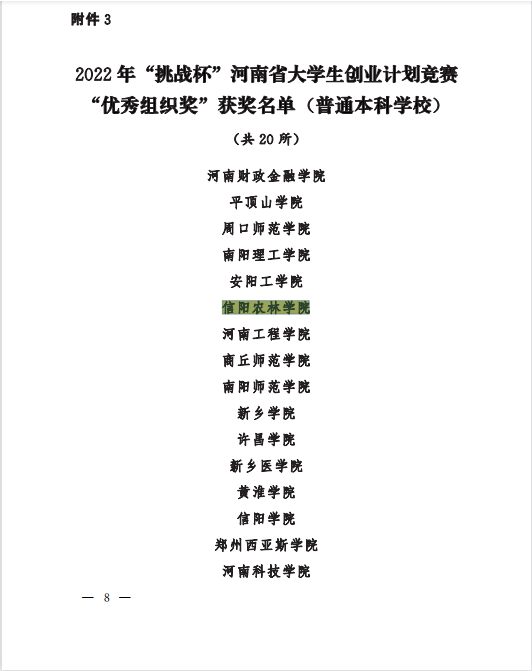 近日,由共青团河南省委、河南省教育厅、河南省人力资源和社会保障厅、河南省科学技术协会、河南省学生联合会共同举办的“2022年‘挑战杯’河南省大学生创业计划竞赛”结果出炉,beat365在线平台官网遴选推报的《助益农“茗”——品速溶毛尖,助茶村振兴》《食小茶——引吃茶风尚 助茶村振兴》等2件作品喜获竞赛金奖,《将水稻种上山——山稻&油茶套作推广者》等6件作品取得竞赛银奖,《晴雨叶脉花》等3件作品获得竞赛铜奖,beat365在线平台官网获得本次竞赛“优秀组织奖”。