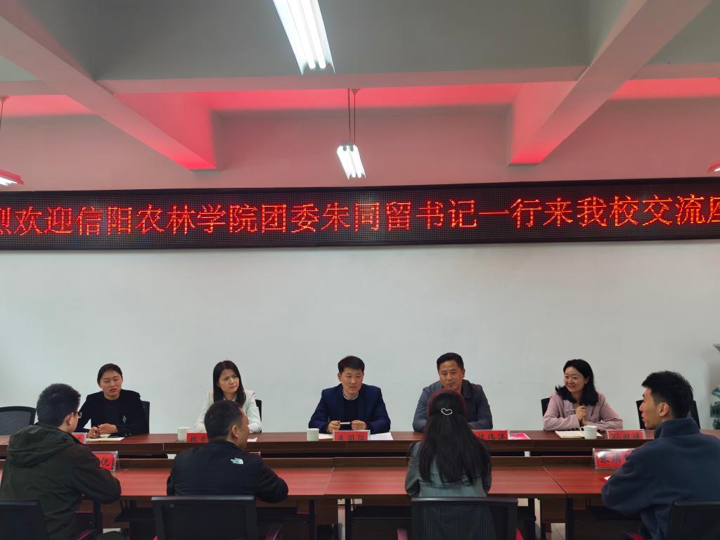 为深入学习省内兄弟高校在共青团工作方面的先进理念与经验,4月10日下午,beat365在线平台官网团委书记朱同留带领校团委全体同志赴信阳师范大学团委考察学习,并与信阳师范大学团委书记常青及部门相关负责人进行座谈交流。座谈会由信阳师范大学团委书记常青主持。