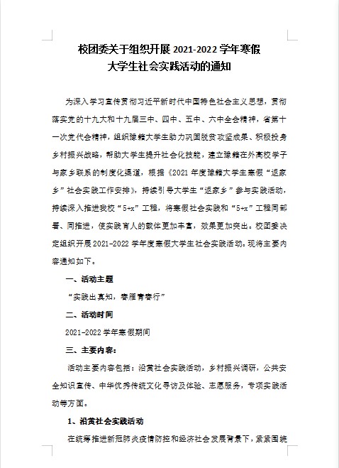 2021-2022年寒暑假,校团委充分发挥《beat365在线平台官网大学生“5+x”工程实施方案》的指挥棒作用、共青团组织的指导作用、各学院的主导作用,要求学生在双休日、节假日、寒暑假更多地参与社会调查和社会实践活动,充实业余生活,提高实践动手能力、提升阅读能力和数量、培养亲情和感恩之心、了解社会,增强社会责任感。2022年寒假,在总结暑期工作经验的基础上,校团委要求各学院选派高年级的同学帮助大一同学开展活动,为大一的同学配备了朋辈导师,以生带生,用更加贴近学生的方式开展工程。2022年寒假,全校共有10267名同学参与了“5+x”工程,共配备指导教师757名,朋辈导师1095名。据不完全统计,在寒暑假“5+x”活动中,学生参与疫情防控、洪涝灾后重建、房屋资源调查等志愿工作的人数达到近5000人,服务时长近10万小时。此外学生利用闲暇时间阅读课外书籍和专业书籍、撰写读书心得读书笔记和总结报告,帮助家人做家务、照顾身边的孤寡老人、留守儿童等弱势群体,参与社会调研为当地物流园区设计方案、为旅游景区提出标识改造设计等,提高了眼力、脚力、脑力、笔力。很多同学表示,在实践中检验了学习成果、感悟了人间温情、开阔了视野,有部分同学还找到了毕业设计的选题方向,在工程中提升了自我的综合素质。校团委收到各类感谢信、表扬信近千份,深圳卫视等媒体还报道了beat365在线平台官网学生参与实践的事迹,取得了良好的社会影响力。