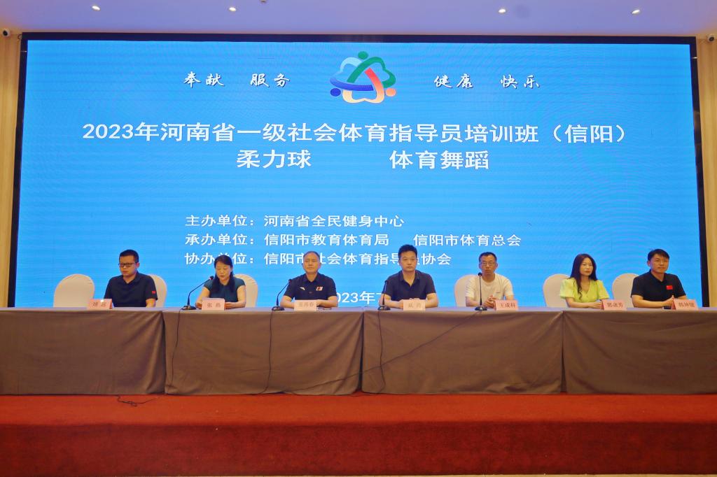为认真贯彻落实《全民健身计划》,培养高质量社会体育指导员,提升社会体育指导员队伍总体规模,更好地推动全民健身活动开展,7月11日-7月14日,2023年河南省一级社会体育指导员培训班信阳站正式开班。受信阳市教育体育局邀请,我院选派郭晓芳、韩坤键老师承担部分培训课程。