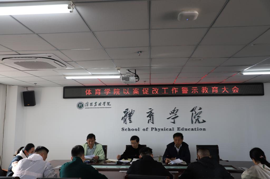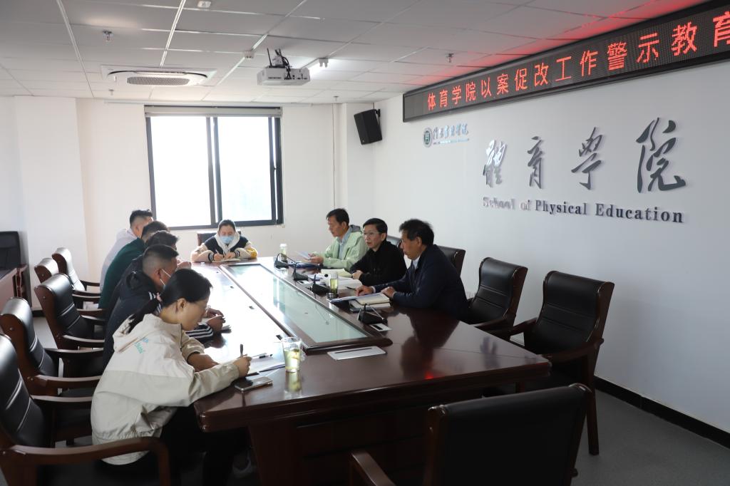 4月15日下午,体育学院组织科级以上干部开展了以案促改警示教育大会,党总支书记李耕主持。