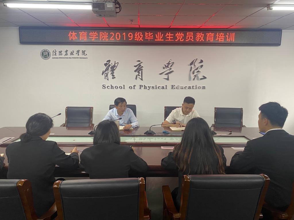 5月24日下午,体育学院党总支在学院会议室组织开展2019级毕业生党员党性教育培训活动,本次党课由院党总支书记李耕主持,教师党员代表及全体毕业生党员参加。