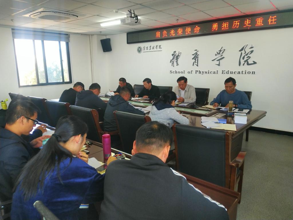 为迎接党的二十大胜利召开,2022年10月11日下午,体育学院党总支在学院会议室开展“肩负光荣使命,勇担历史重任”主题党日学习,本次会议由学院党总支书记李耕主持和领学,全体党员参加。