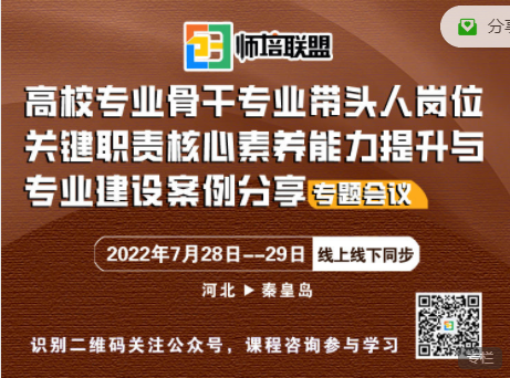 为了有效的提升专业带头人及专业骨干教师专业建设能力,培育新时代符合市场发展的专业负责人,应校人事处安排组织,我院教学管理人员及部分教师于7月28-29日参加了在秦皇岛召开的“高校专业骨干专业带头人岗位关键职责核心素养能力提升与专业建设案例分享专题会议”线上培训。