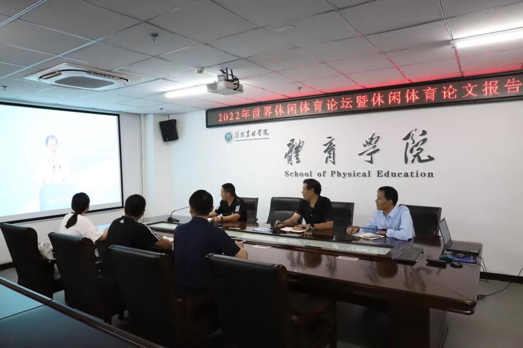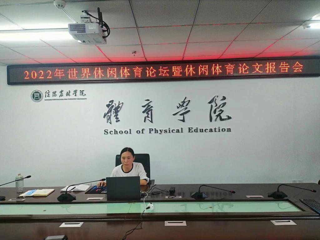 我院吴丽老师精心准备并向休闲体育协会报送了题为《大别山地区休闲体育特色资源开发研究——以信阳市为例》,经专家组评审被录用,并被邀请参加会议作专题报告。由于疫情原因,吴丽老师参加了线上会议。此次论文报告会受到了我院领导的高度重视,并组织我院教师一起观看。8月27日上午,我院部分教师共同观看了开幕式和主旨报告,下午吴丽老师进行了专题报告。