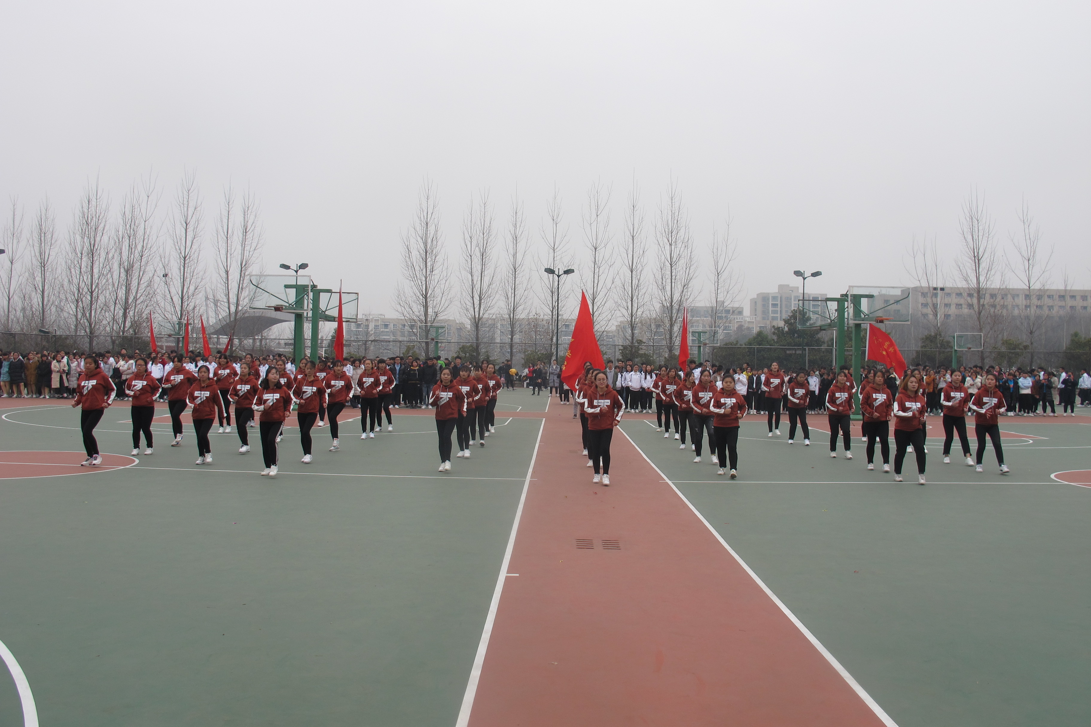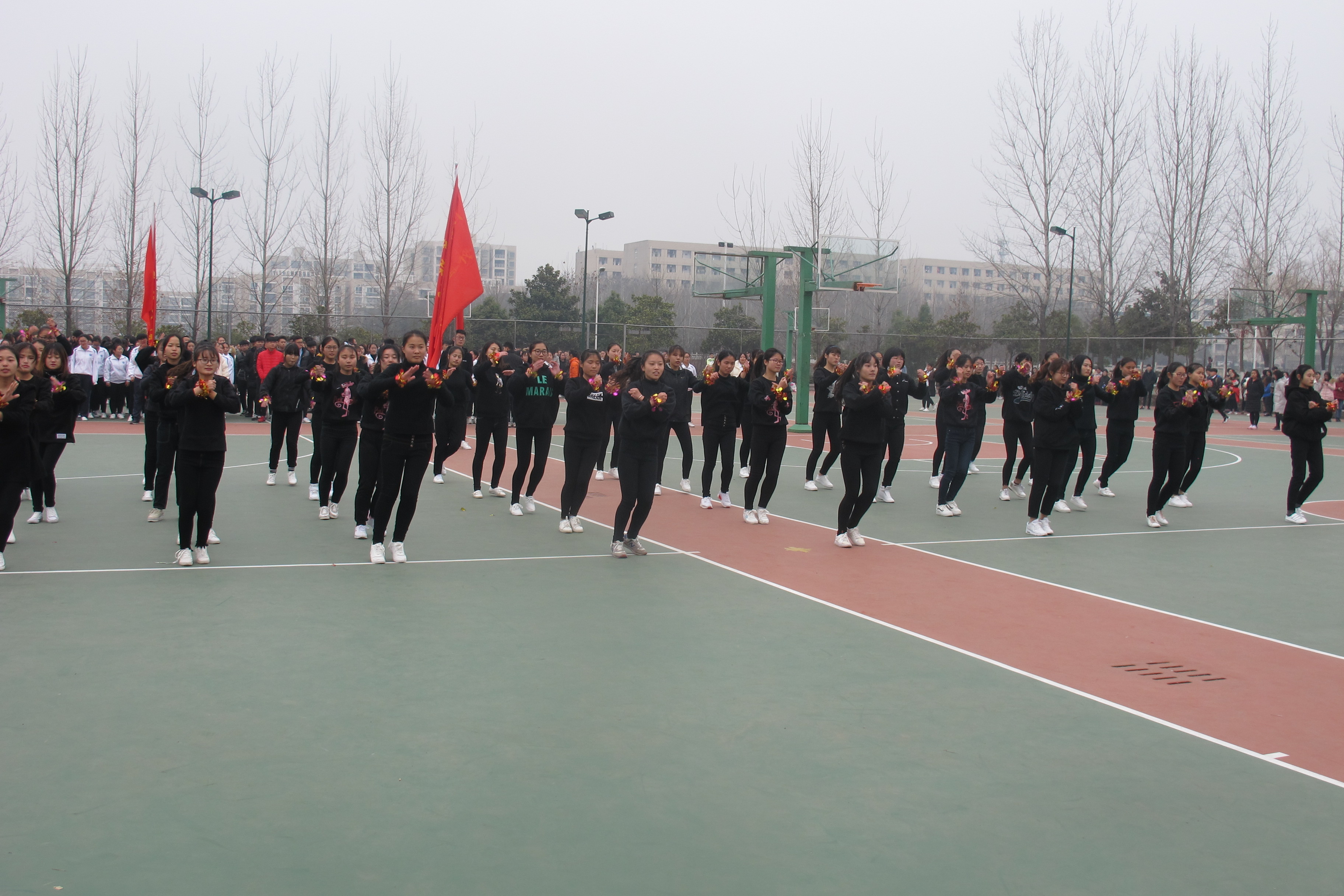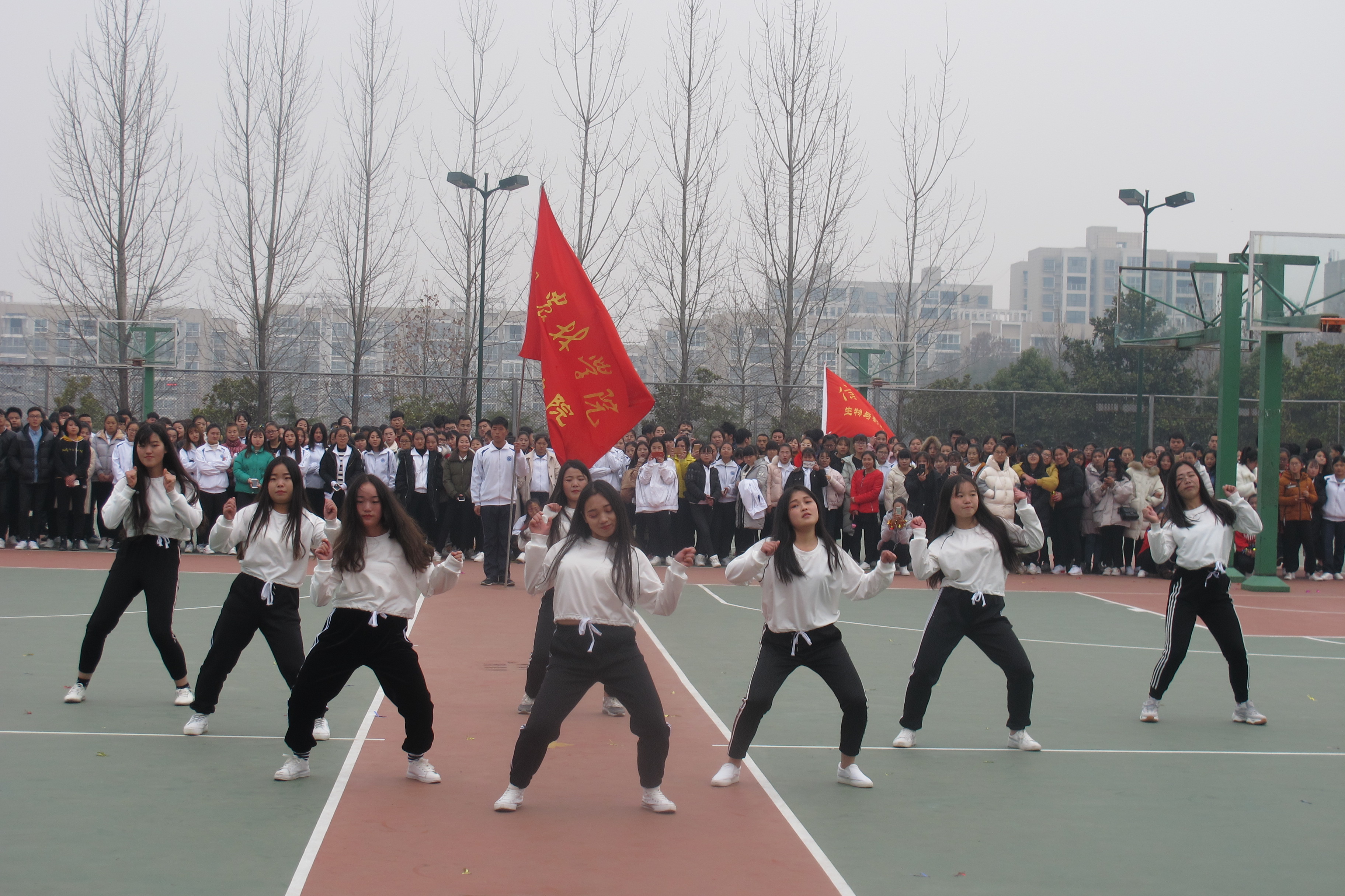 下午2时,比赛在茶学院表演队的精彩表演中正式拉开帷幕。时值冬至,天气寒冷,但现场同学们热情高涨,高潮迭起,比赛场地洋溢着欢快的气氛。喝彩声、加油声、欢呼声、助威声不断。各参赛队在观众的欢呼声中先后登台,以饱满的精神面貌、充满张力的动作和富有美感的表演感染着在场的每一位观众,上演了一场场精彩纷呈的视觉盛宴。