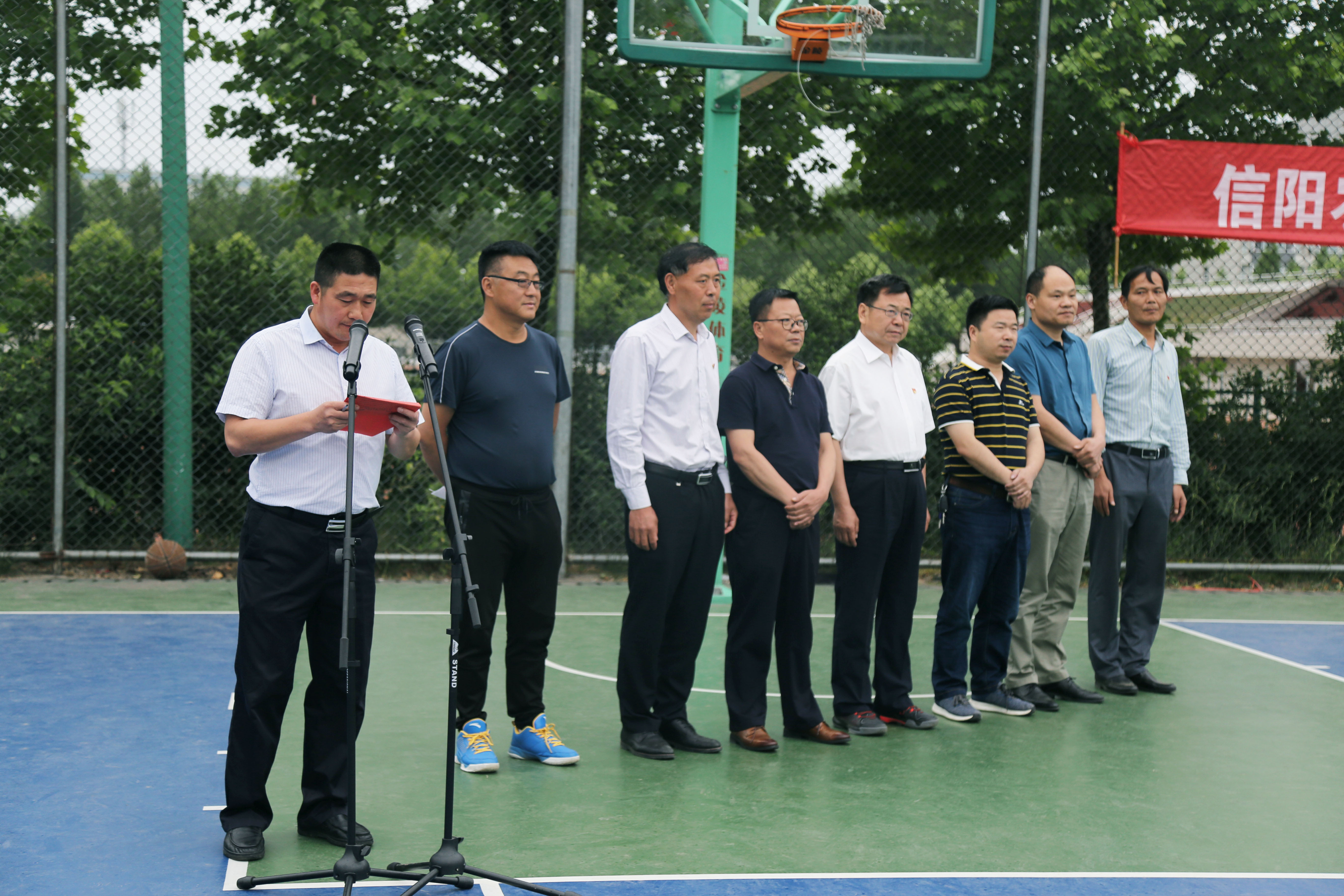 由beat365在线平台官网体育运动委员会举办,体育学院、学生处承办的beat365在线平台官网2018-2019年“顺河”篮球联赛经过近七个月紧张激烈、公平公正的角逐,于5月28日下午圆满落下帷幕。随后举行了隆重的颁奖仪式。校党委副书记刘光生、淮滨顺和农业综合开发有限公司总经理优秀校友邢江龙、信息工程学院党总支书记胡凤堂、农学院党总支书记雷振山、体育学院李俊主任等参加颁奖仪式,并为获奖代表队运动员颁发证书、奖杯和奖金。颁奖仪式由体育学院副主任郭德兵主持。