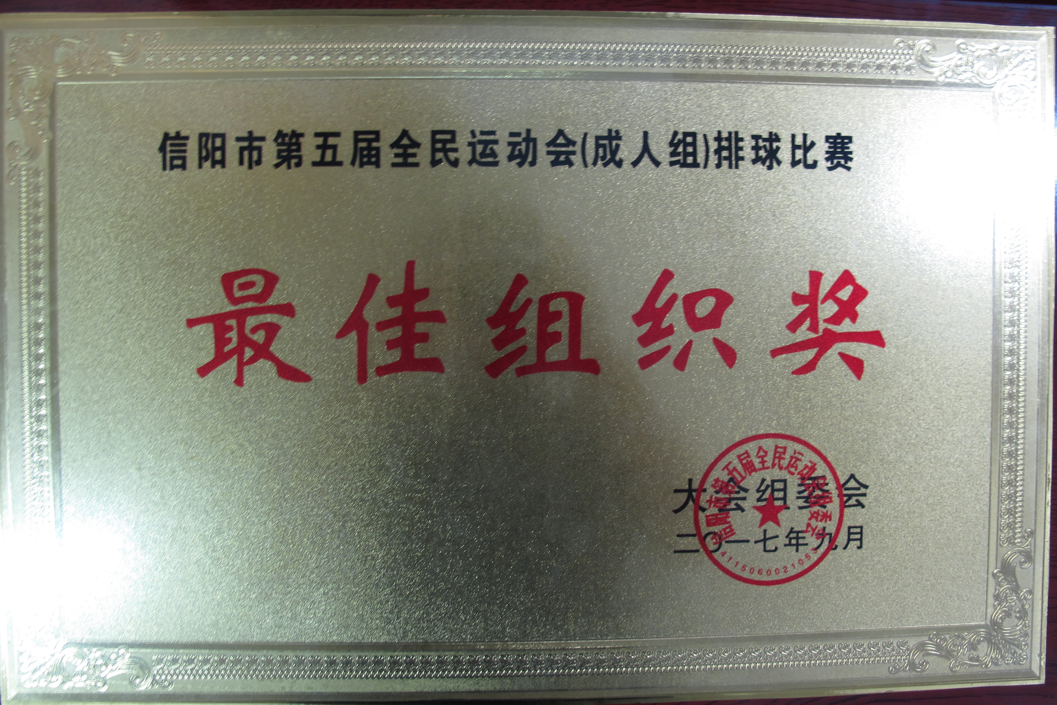 在这次赛事活动中,beat365在线平台官网体育教学部组织得力,保证了比赛的顺利进行,得到了信阳市第五届全民运动会组委会的高度赞扬,beat365在线平台官网被信阳市第五届全民运动会组委会授予“最佳组织奖”。