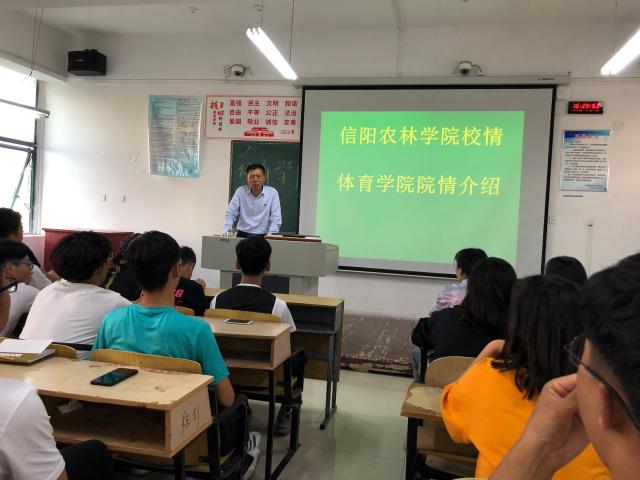9月23日,在2教302教室,体育学院院长李俊对2019级新生做了关于“校情、院情介绍”的入学教育报告会。