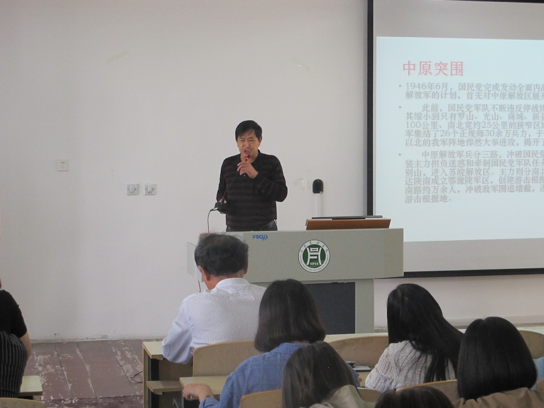 邱兴平主任分别讲述了大别山四度辉煌的历史、大别山革命精神的形成及其内涵,坚定信念、胸怀全局、团结一心、勇当先锋的大别山革命精神对实现中华民族伟大复兴的中国梦的作用。号召同学们要继承革命先烈优良传统、弘扬大别山精神、努力学习、胸怀天下,为实现中华民族伟大复兴的中国梦做出自己应有的贡献。