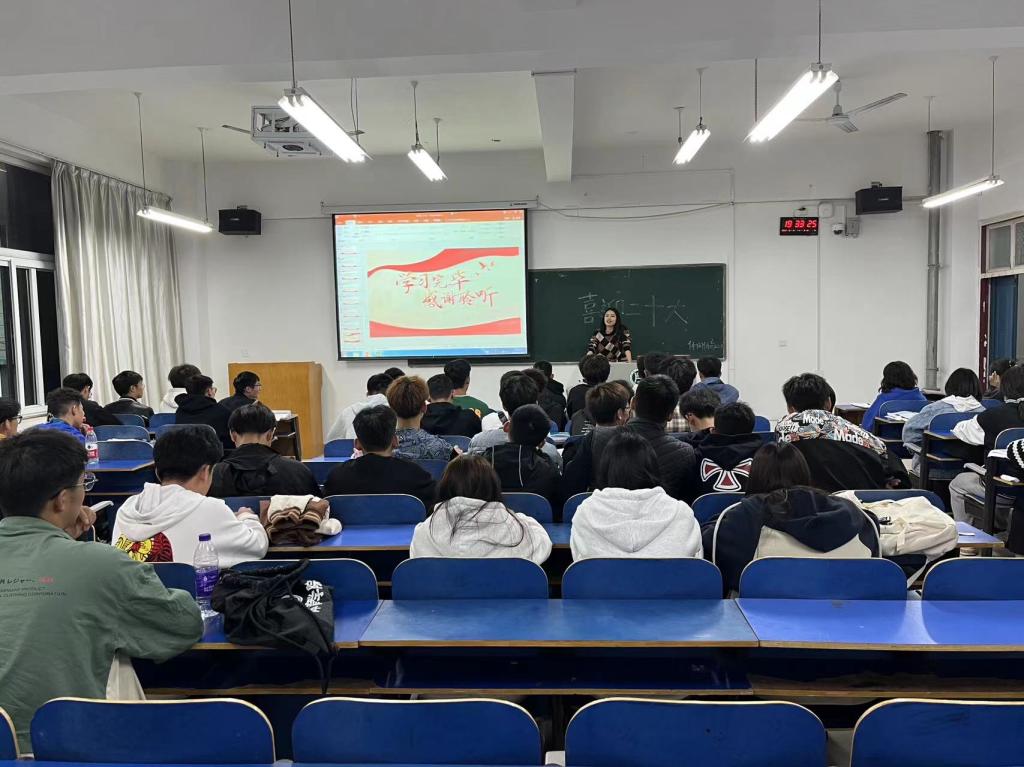 为迎接党的二十大的召开,深入学习贯彻习近平新时代中国特色社会主义思想,10月13日下午,体育学院在一教D305,以“喜迎二十大,永远跟党走”为主题,对休闲体育专业2022级学生组织开展教育活动,休闲体育2022级全体学生及辅导员参加,22级一班团支书武文静主持。