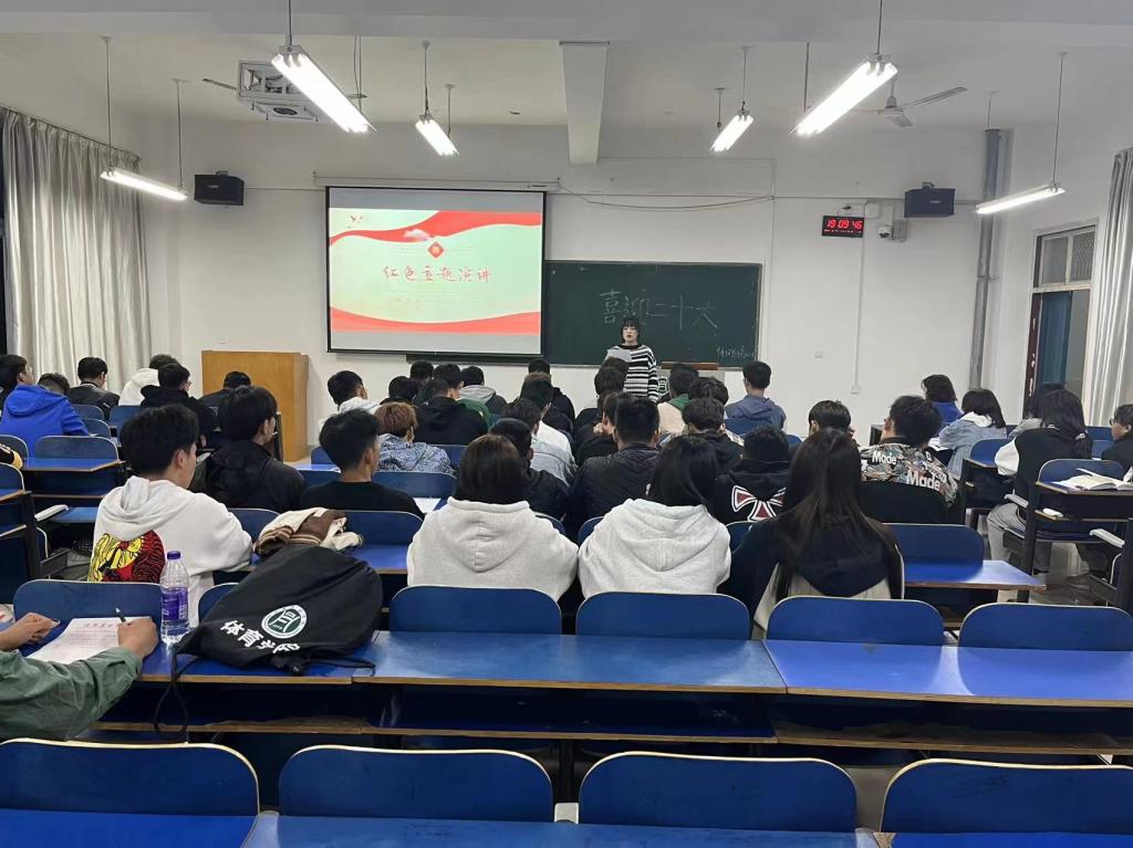 活动中,武文静分别从了解二十大、党的历程、红色演讲、趣味回答等四方面展开。通过回望历史,沿着先辈们的红色足迹,在逐梦中实现自己的人生价值。在活动中22级一班叶诗雯、二班团支书王明奇、三班团支书唐一航的红色演讲振奋人心。最后的趣味回答让学生在追忆峥嵘岁月中赓续传承红色文化,感受精神力量。