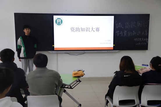 立志成才,感恩奉献,为深入学习贯彻习近平新时代中国特色社会主义思想,增强当代大学生的诚信意识和责任意识,体育学院于3月28日下午在实验楼108教室开展“资助知识竞赛”。比赛由体育学院22级同学栾文昭主持,休闲体育22级全体同学参加。