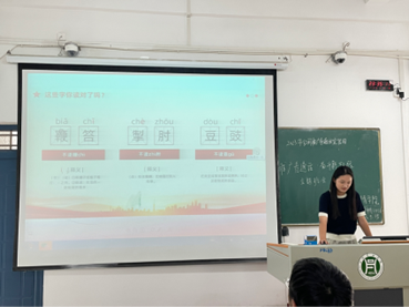 班会上,温佳怡同学分别从,“推广普通话”,“写出规范字”,“了解文化史”三个方面进行讲解。让同学们更加深入的了解推广普通话的意义,帮助同学们养成说普通话的习惯,提高同学们的语言文字应用能力,在班会的最后,温佳怡同学特别提醒大家,“希望同学们可以互相督促,互相鼓励,养成讲普通话的习惯。”