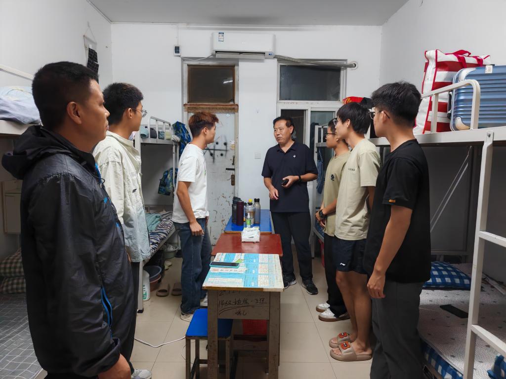在走访过程中,学院领导老师逐个访问了新生宿舍,详细询问了新生们的生活适应情况,包括饮食起居、宿舍环境以及遇到的困难等,并给予相应的指导和建议。同时,学院领导还重点对宿舍用电安全、人身财产安全和校园反诈防范方法等做了宣讲教育,鼓励新生们积极适应大学生活,保持乐观向上的心态,尽快融入新的集体。