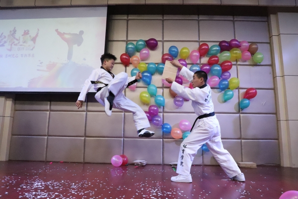 王文兴带来的魔术表演用雨伞、卡片、玫瑰等小道具创造一次次“见证奇迹的时刻”,活泼的现场调侃为晚会增添了许多乐趣。招式凌厉、威武大气的跆拳道表演《跆魂》更是将现场的气氛再一次带向了高潮,在跳跃与旋转中向观众展现了体育运动的力与美。