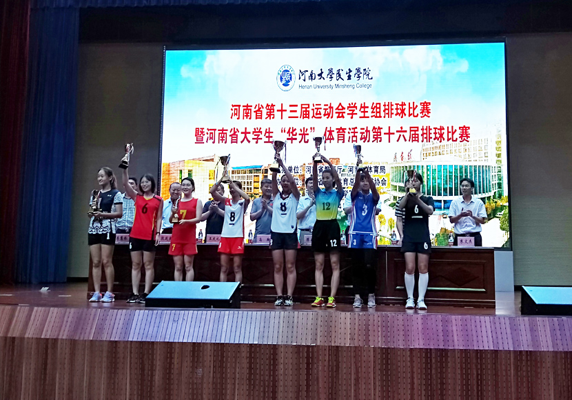 7月15日至7月20日,由河南省教育厅和河南省体育局主办的河南省第十三届运动会学生组排球比赛暨河南省大学生“华光”体育活动第十六届排球比赛在河南大学民生学院举行。beat365在线平台官网学生女子排球队参加了本届学生女子甲组比赛,经过激烈争夺,beat365在线平台官网代表队再次荣获该组别季军,这也是beat365在线平台官网学生女生排球队连续四届稳坐该组别第三名的位置。