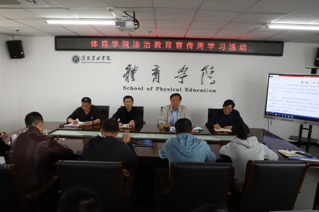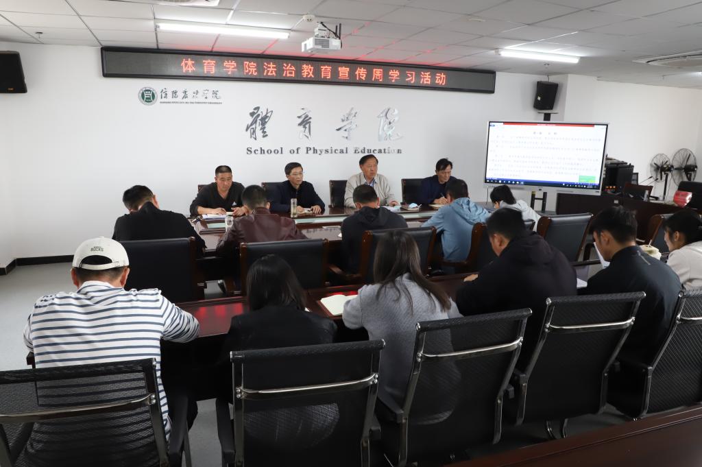 为深入开展普法工作,增强教师法律意识和法制观念,4月11号下午,体育学院于双创南楼622会议室召开法制教育宣传周学习活动。活动由党总支书记李耕主持,学院全体教师参加。