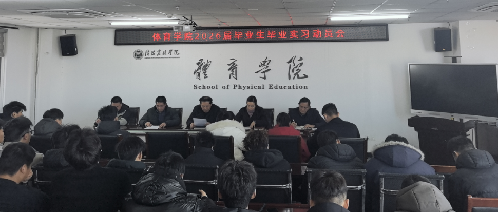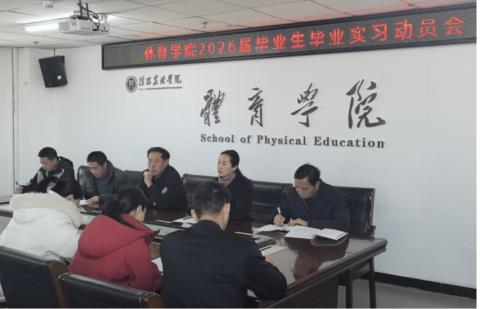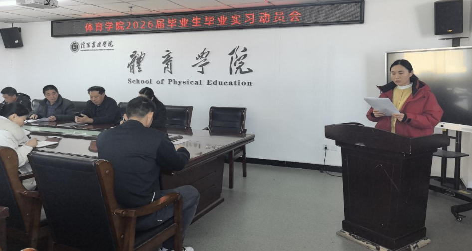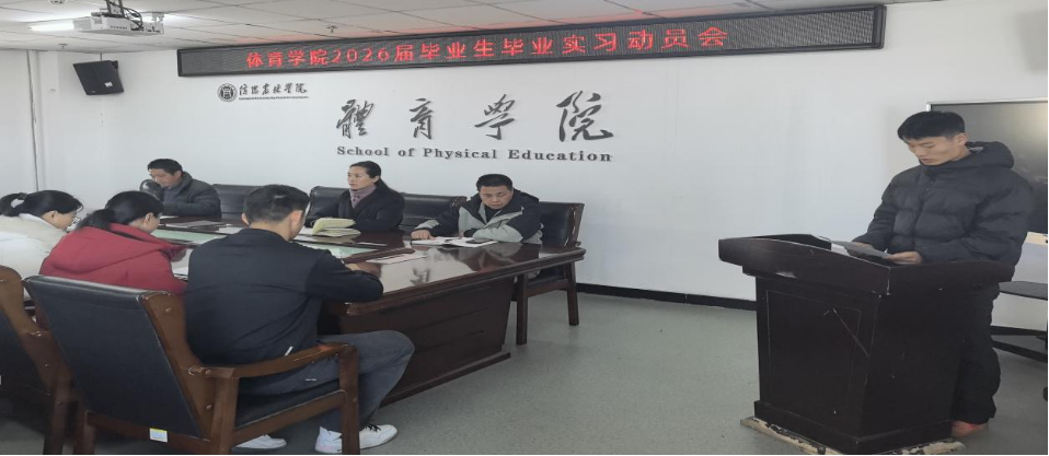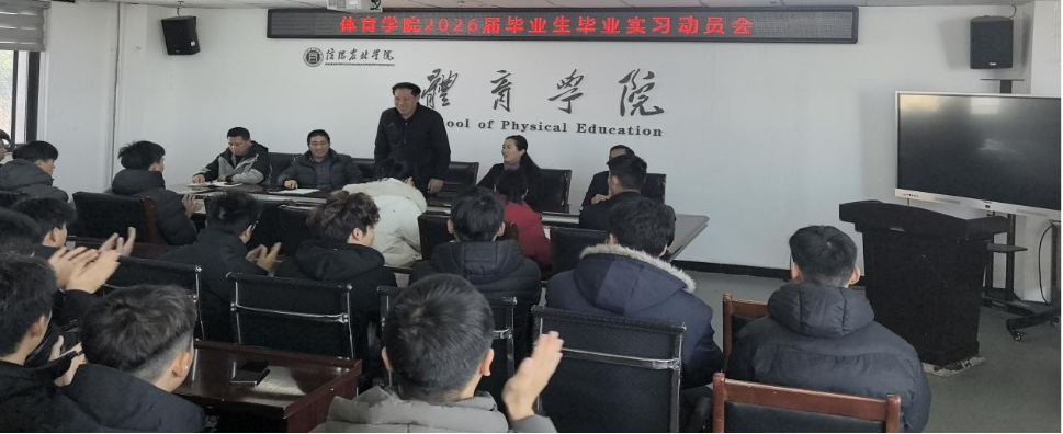 为引导毕业生明确实习目标、强化责任意识,确保毕业实习工作平稳有序推进,2026年1月7日,体育学院在学院会议室召开2026届专科毕业生毕业实习动员会。学院领导班子成员、辅导员、指导教师代表及全体2026届专科毕业生参加会议。会议由副院长郭德兵主持。