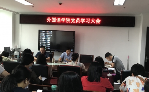 2020年7月17日,外国语学院在院办803召开党员学习大会。全院教工党员参会,会议由党总支书记张志强主持。