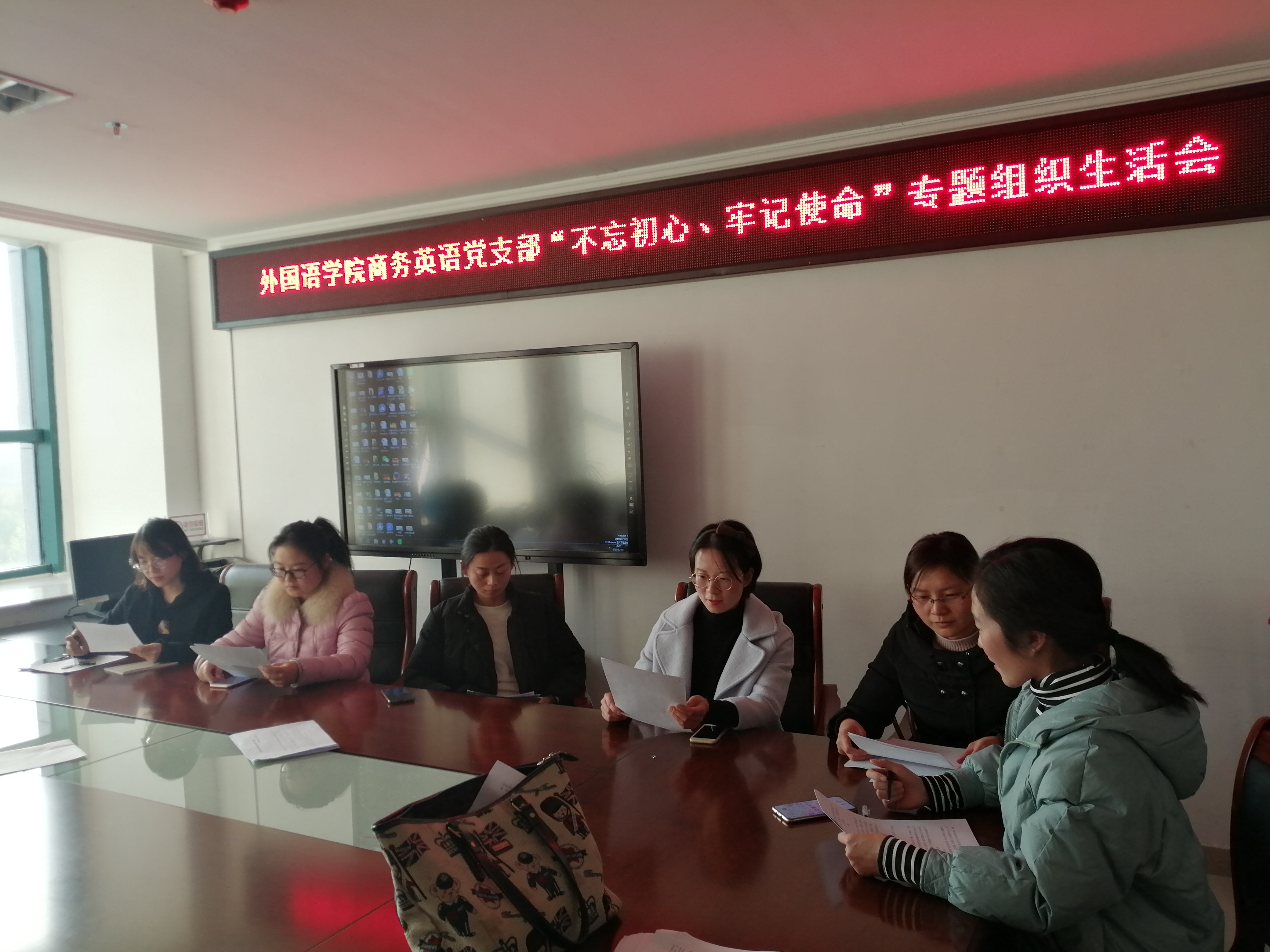 会后,我院党总支下设的五个教工党支部分支部召开了“不忘初心、牢记使命”专题组织生活会。各位党员围绕“不忘初心、牢记使命”主题教育“理论学习有收获、思想政治受洗礼、干事创业敢担当、为民服务解难题、清正廉洁作表率"的具体目标,结合主题教育的学习情况,汇报收获、查找差距、自我检视。党员们结合个人实际认真开展批评和自我批评,查找症结,提出整改意见和措施,组织生活会后进行了民主评议党员活动。(外国语学院 朱俊梵)