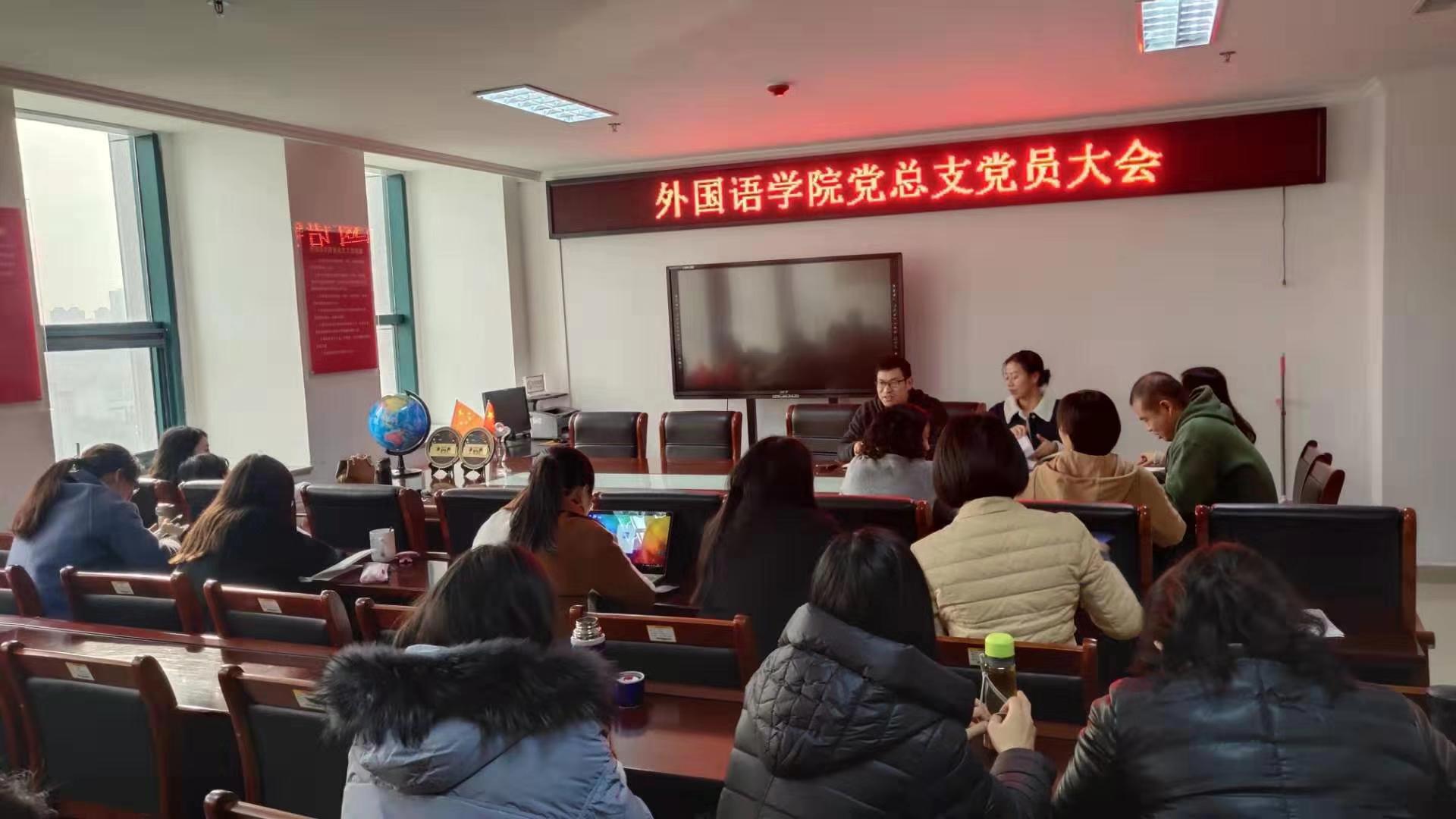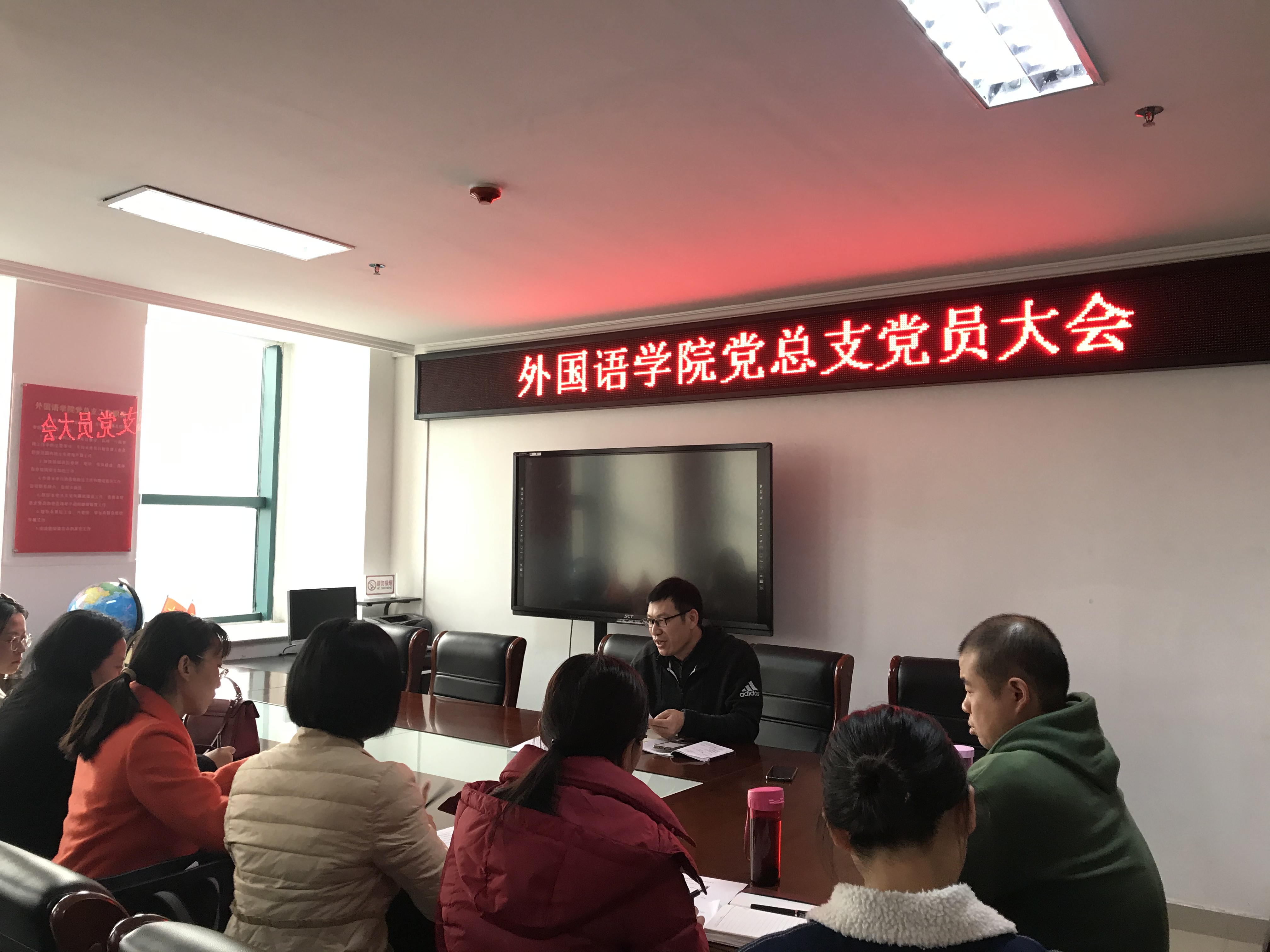 为进一步加强我院基层党组织建设,充分发挥基层党组织战斗堡垒作用,切实做好各项党建工作,1210日下午,外国语学院党总支于院办803召开党员大会,会议由我院党总支副书记吴宏主持,副院长蔡鸣、学院班子成员、各党支部书记及全体教工党员参会。
