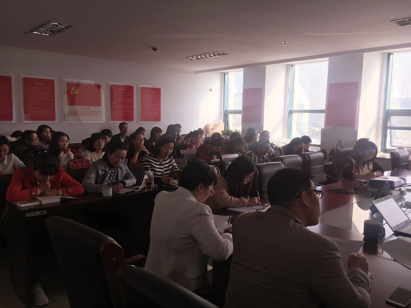 张书记首先宣读了习近平总书记在大会上做的报告。报告回顾了中国的历史和五年来党的工作,描绘了未来的宏伟蓝图——2020年全面建成小康社会,到2035年,基本实现社会主义现代化,到本世纪中叶,把我国建成富强民主文明和谐美丽的社会主义现代化强国。随后,张书记结合自身三十年的党员成长经历,分享了三十多年来党和国家天翻地覆的变化,以及人民越来越美好的生活。张书记强调,全体教职工要学习党的历史,了解党的历史,认真学习党的十九大精神,感受党的伟大以及幸福生活的来之不易,不忘初心,牢记使命;同时一定要将会议精神与工作实际进行紧密联系,知行合一,埋头苦干,锐意进取,做好本职工作,为学校的发展贡献力量,为夺取新时代中国特色社会主义伟大胜利、实现中华民族伟大复兴的中国梦、实现人民对美好生活的向往继续奋斗!