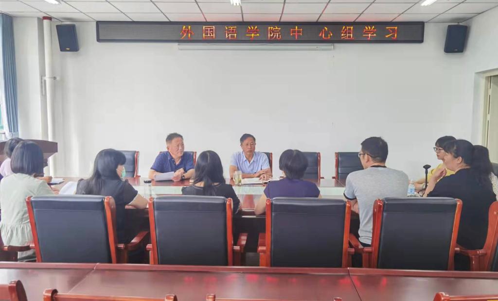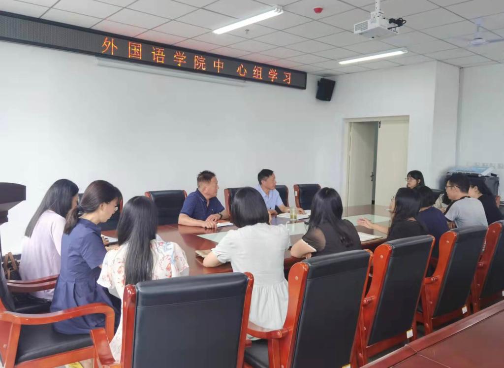 2021年9月19日,外国语学院在文学艺术中心402召开党总支中心组学习(扩大)会,会议由党总支书记张志强主持,学院班子成员、支部书记、副科级及以上干部参会。