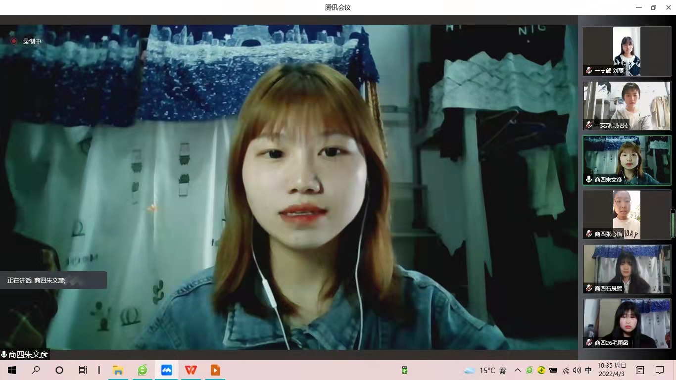 活动上,四组同学怀着对革命先烈的崇敬之心饱含深情地进行了朗诵,带领大家重温先烈们永葆初心、前仆后继、不屈不挠、英勇斗争的革命事迹。随后,优秀团员代表王燕、焦晓婷、张若男发表感想,纷纷表示要继承和发扬革命先烈的精神品质,艰苦奋斗、顽强不息、孜孜不倦、九九为功,求得更丰富、更先进的知识,努力担起历史和时代赋予高校青年学子的庄严使命。活动最后,学生第二党支部书记赵瑞、团总支书记高宇做总结发言,号召学院全体党员和团员铭记先烈精神,不忘初心使命;文明网络祭祀,配合防控要求。