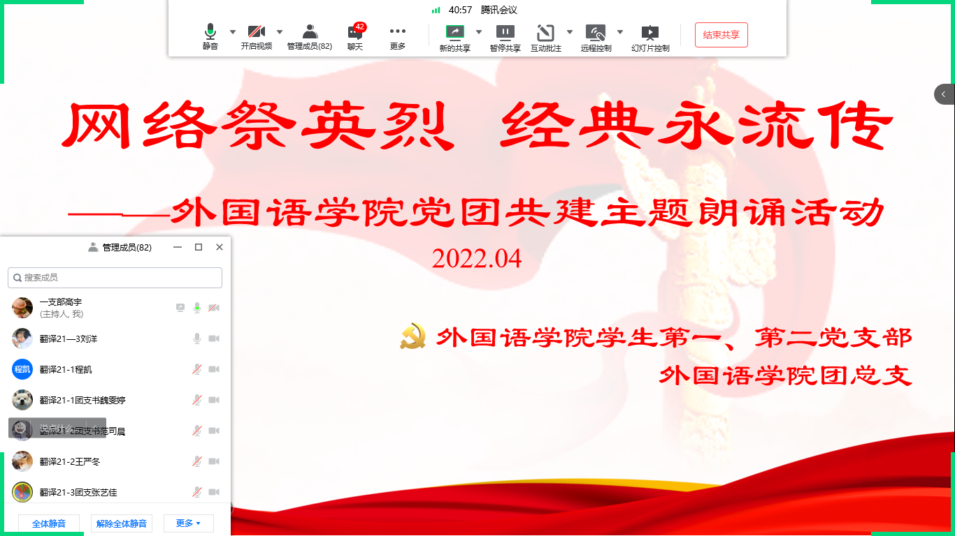 网络祭英烈 经典咏流传——外国语学院开展党团共建主题朗诵活动