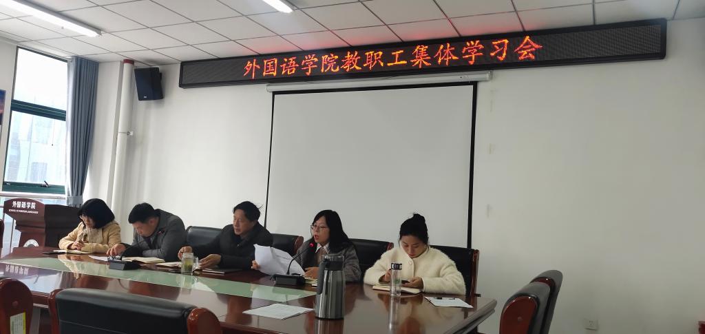 214日下午,外国语学院在文学艺术中心402召开教职工集体学习会。会议由党总支书记张志强主持,学院全体教职工参会。