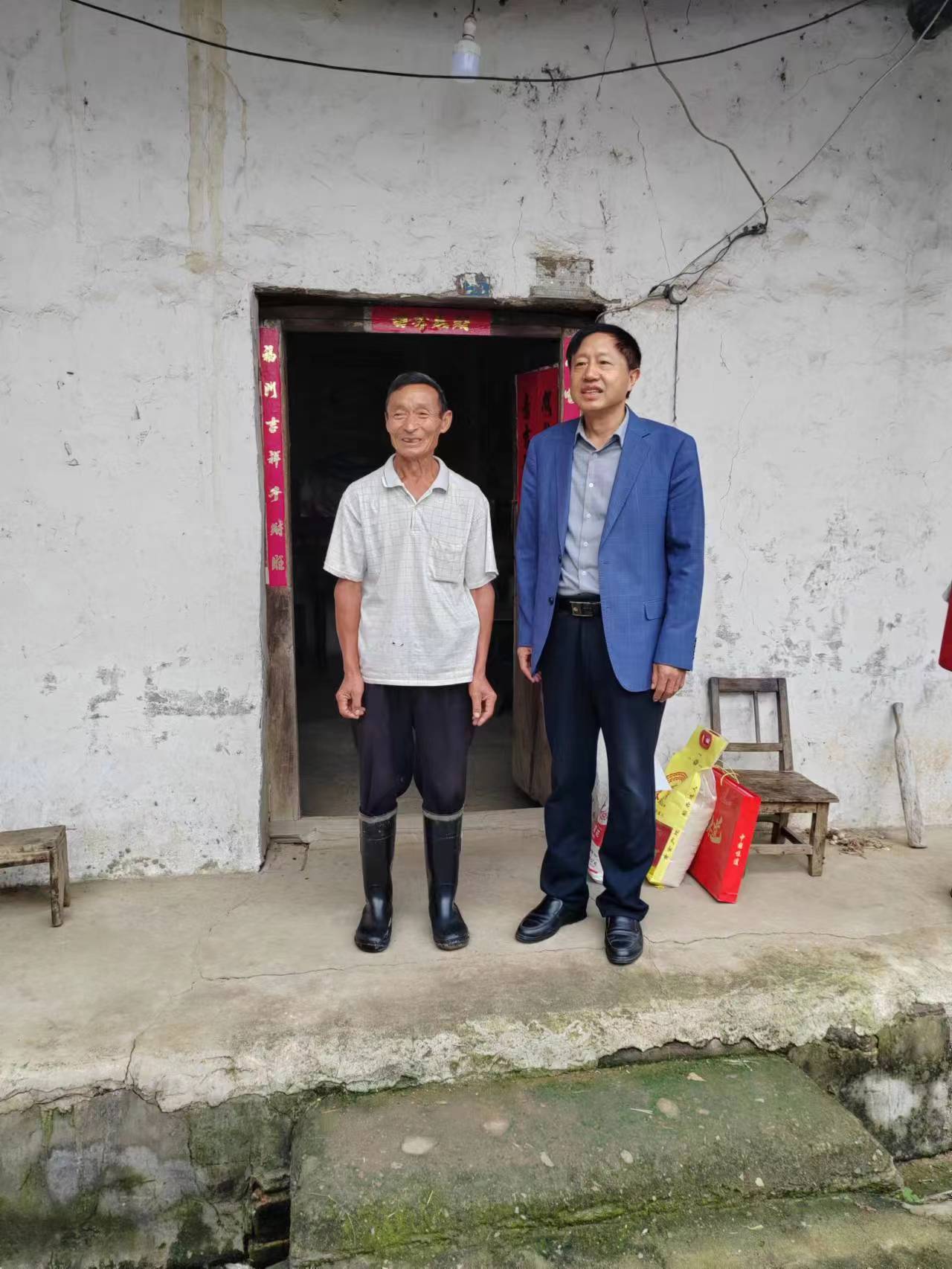 9月28日,在中秋国庆双节来临之际,外国语学院党总支书记张志强随学校双节慰问团一起,前往固始县乐道村慰问学院联系的贫困户陈红生,为贫困户送去米、油等生活物品以及节日的祝福。