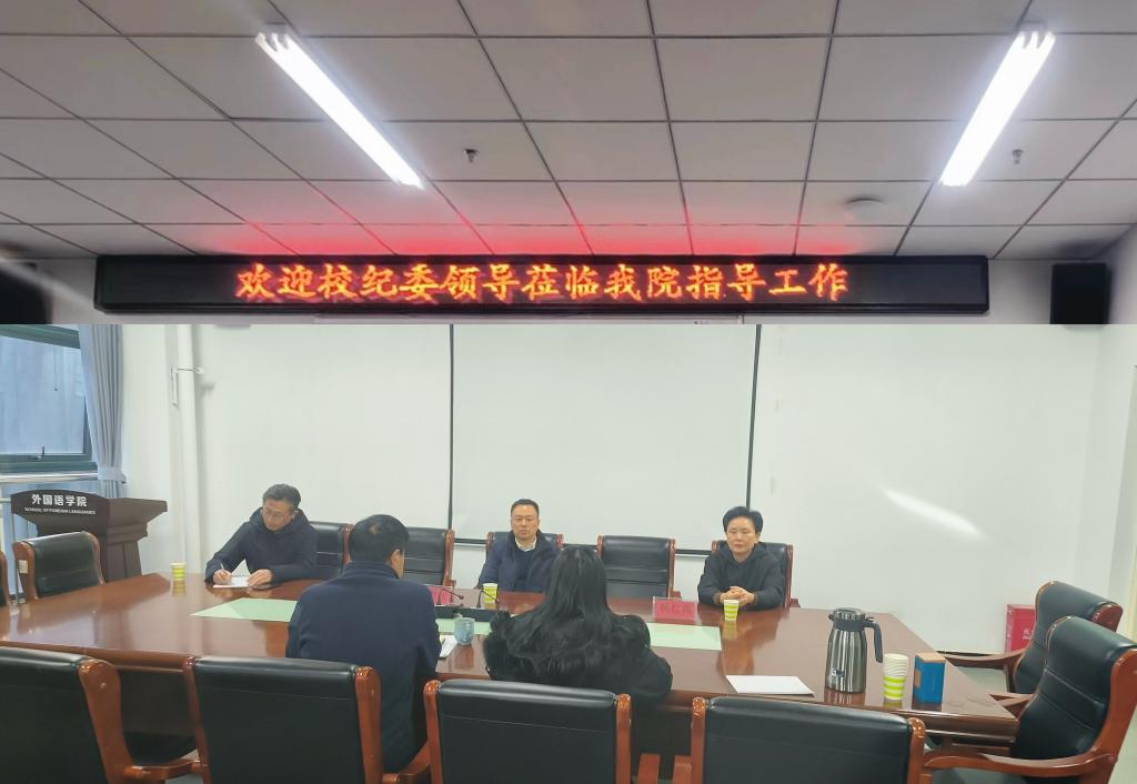 12月12日下午,纪委书记陈寒冰、副书记杨红霞、办公室主任何军一行到外国语学院走访调研。学院党总支书记张志强、副院长芦晓莉参加了本次调研。