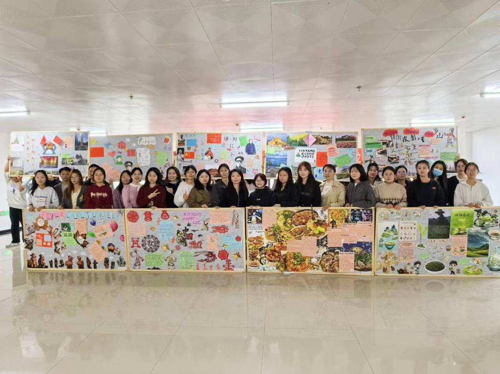 活动过程中由各班级为单位搜集与信阳红色文化、信阳历史人物、信阳革命根据地、信阳非遗、信阳民俗文化、信阳美食文化、信阳茶文化、信阳风景名胜等九个文化主题有关的资料,通过团结协作、提炼整合、分析注解,制信阳文化宣传展板,并结合外国语专业知识对有关内容进行介绍讲解。