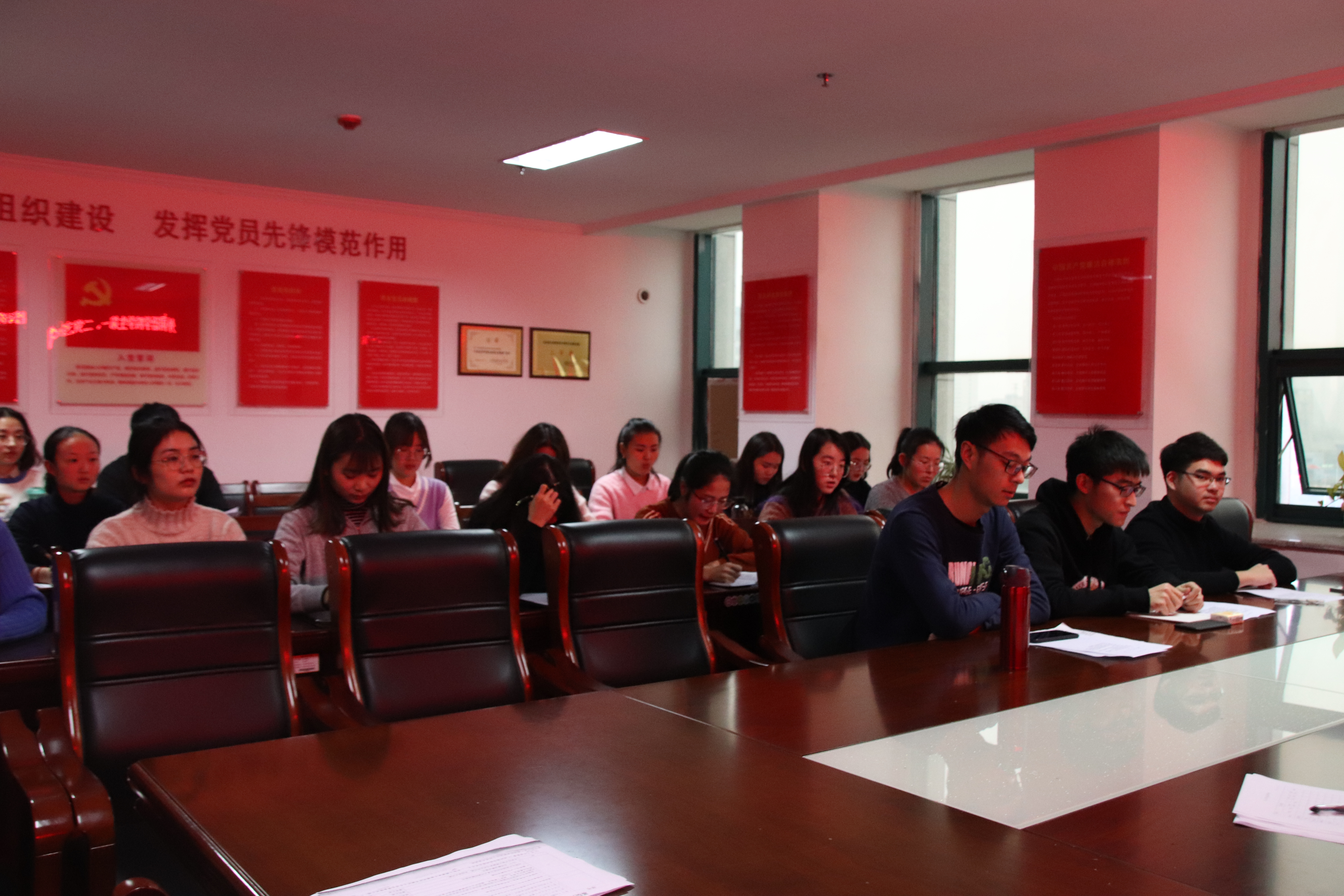 为推动“不忘初心、牢记使命”主题教育走深走实,20191130日下午4点,外国语学院学生第一、二党支部在行政楼803开展党员“初心使命四问”主题党日活动,学生第一党支部书记范琼琼、第二党支部书记朱俊梵主持本次党日活动,支部全体学生党员参加。