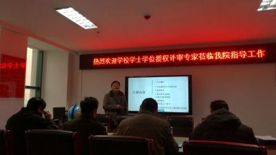会上,外国语学院滕院长从专业概况、专业建设及人才培养方案、教师队伍、教学条件及利用、教学过程及管理、实践教学、毕业论文设计、专业建设等方面向各位专家进行了汇报,并就自评中存在的不足提出了相应的改进措施。专家组对商务英语专业学士学位授权评建材料准备工作表示肯定,同时也对材料中存在的问题提出了宝贵意见并给予了非常细致的指导。