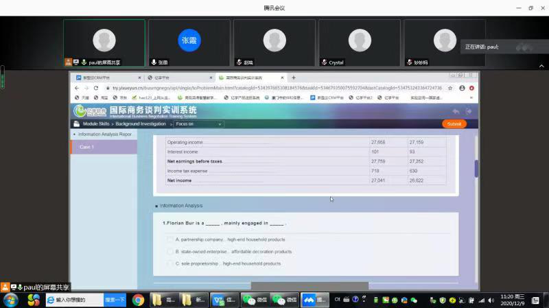 为提升我院商务英语专业学生实训能力,方便教师生开展课程专项实训和真实商务项目谈判模拟实训,12月9日中午11:00,外国语学院商务英语教研室骨干教师参加了“亿学3D国际商务谈判实训系统”在线培训活动。