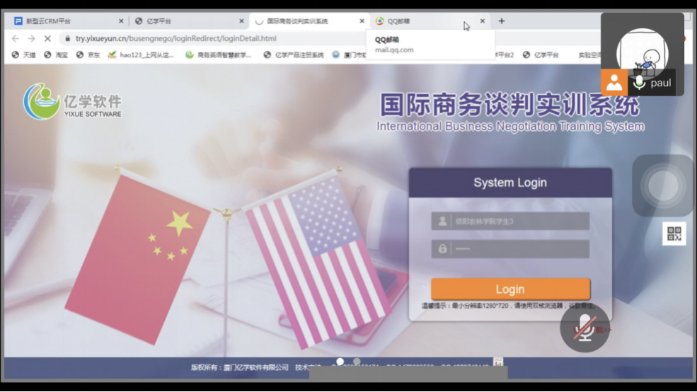 “亿学3D国际商务谈判实训系统”在线培训活动