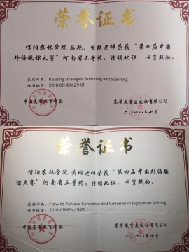 外国语学院教师黄琳老师荣获 “第四届中国外语微课大赛” 本科英语组河南省三等奖, 马艳老师及其所在团队荣获“第四届中国外语微课大赛”本科英语组河南省三等奖。(外国语学院)