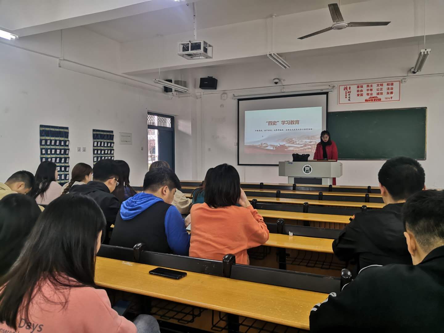 班会上,各班辅导员围绕四史教育的背景、内容及影响等方面,系统地向同学们介绍了“四史”的基本内涵,结合《建党伟业》、《建军大业》、《建国大业》等电影片段和历史事实,讲述了中国共产党创立、新中国成立、改革开放及社会主义发展以来的重大事件,强调在百年未有之大变局下,同学们更应回望历史,坚守初心。