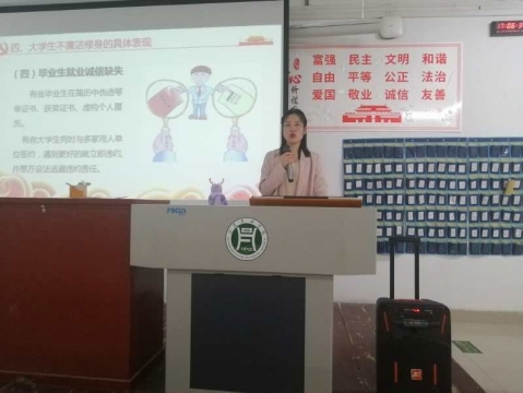 首先,关迎雪老师通过举例古今廉洁与腐败的正反面教材形象生动地向同学们讲解了反腐倡廉的古与今。接着,关老师提到什么是廉洁的问题,进一步帮助同学们理解廉洁二字的深刻内涵,端正了同学们关于廉洁修身的思想观念。紧接着,关老师谈到大学生廉洁教育的重要性,从学校、社会、民族三个层面向同学们论述了廉洁自律的关键作用。最后,关迎雪老师和同学们一同讨论了当代大学生身边如考试舞弊、论文抄袭、生活奢侈浪费等缺乏廉洁修身的行为,并告诫同学们要从思想上、行动上时刻秉持廉洁自律观念,积极向身边廉洁榜样学习。