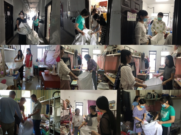 寒来暑往,四季交替,又迎来一年毕业季。为帮助毕业生解决行李方面的后顾之忧,外国语学院成立辅导员临时服务团队,通过一对一帮扶的方式,由辅导员们深入毕业班宿舍进行内务整理,对学生行李物品进行分类打包,开展免费邮寄工作。
