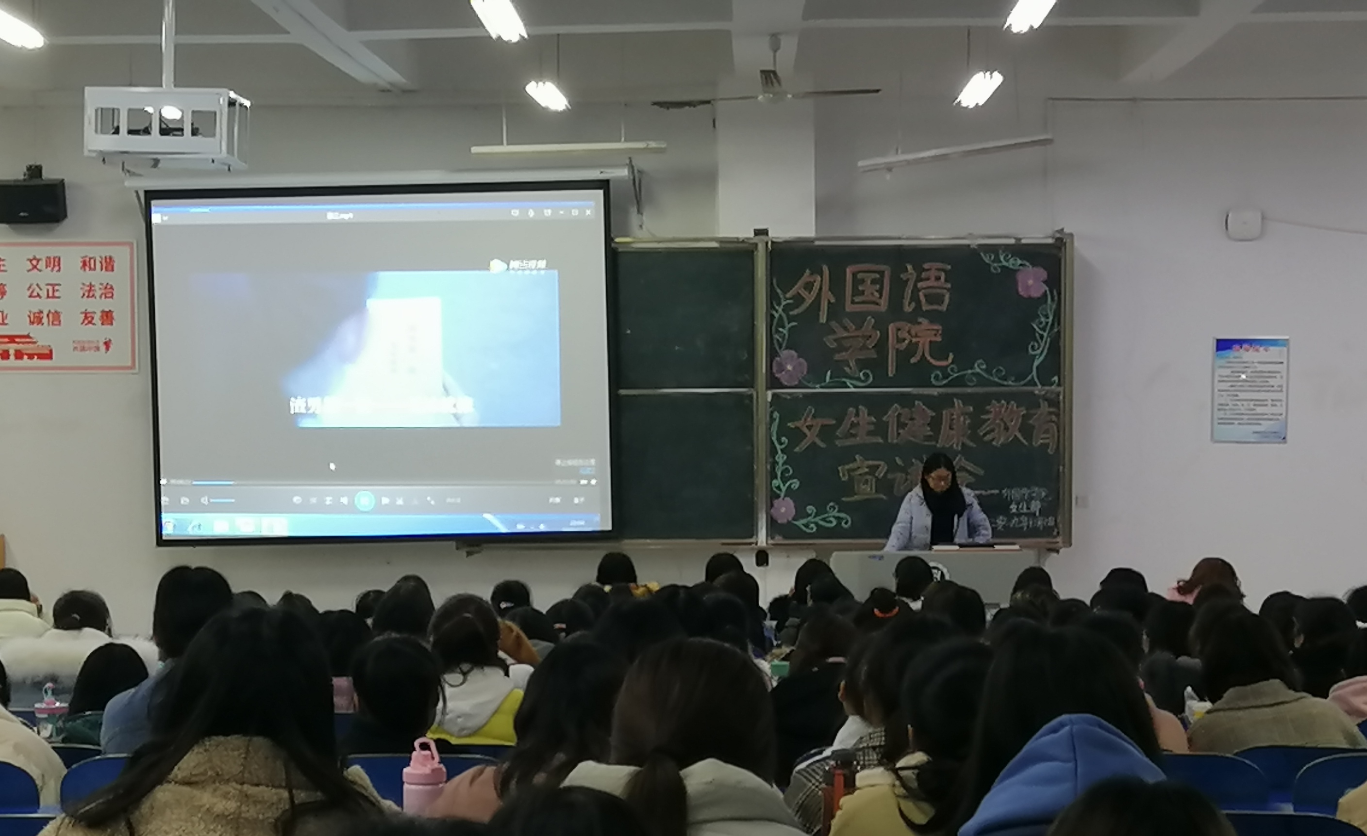 女生健康安全教育是高校工作的重要组成部分,为增强我院女生安全健康意识,帮助其身心健康快乐成长,20191210日晚外国语学院一教E102举办了以女生健康安全为主题的宣讲会,宣讲会由学生代表刘素红主持,我院 2019级全体女生及部分学生干部代表