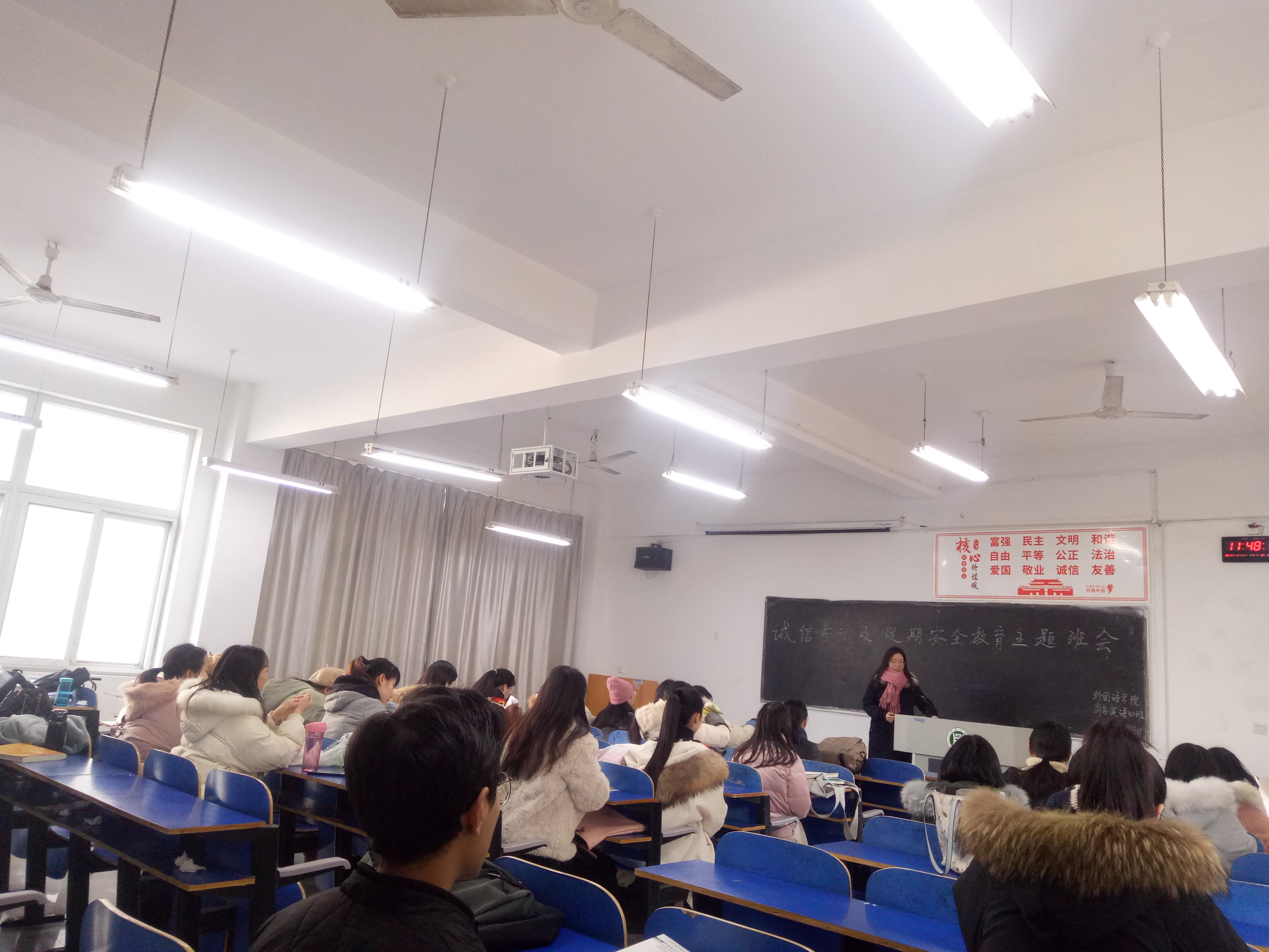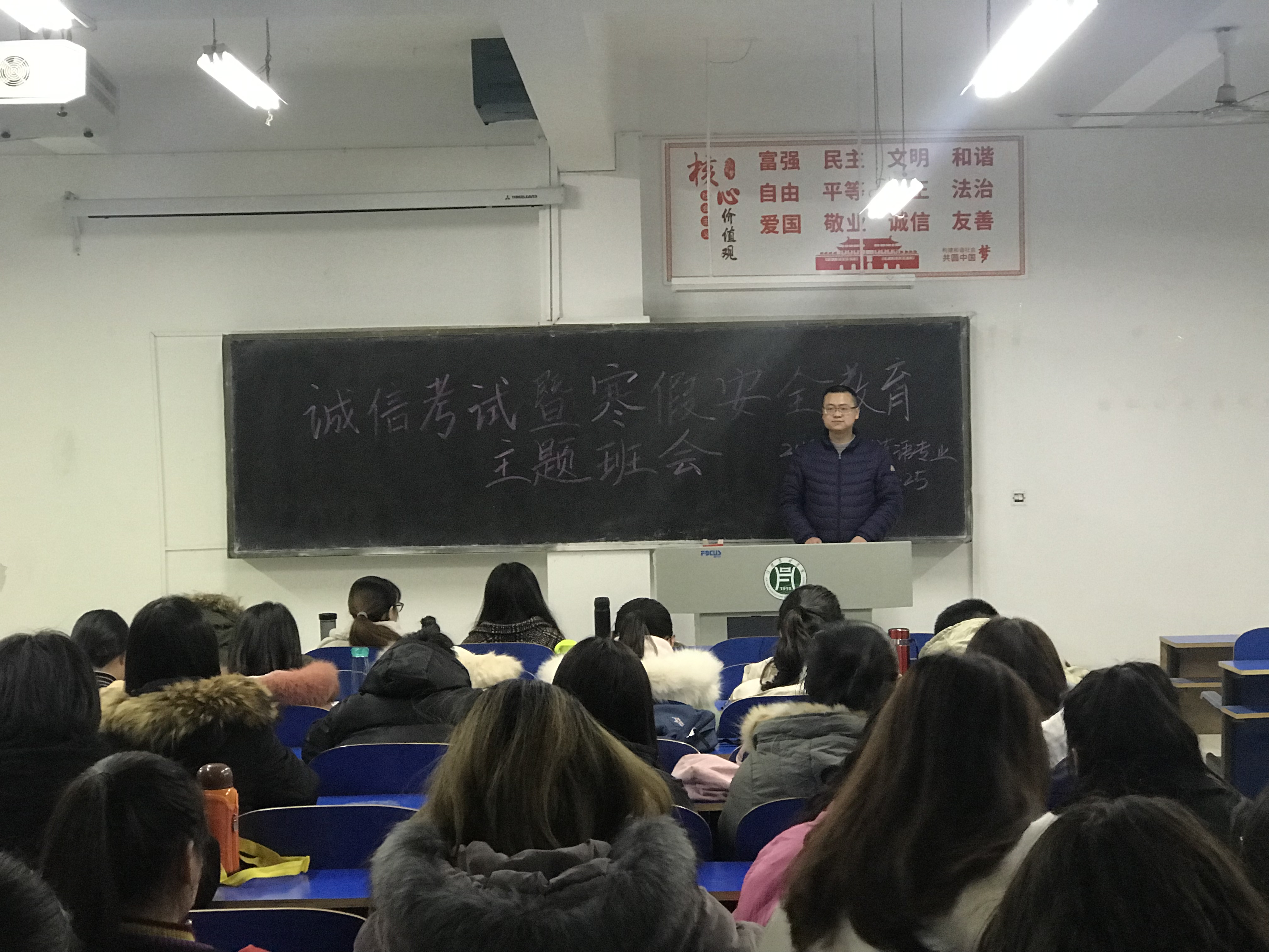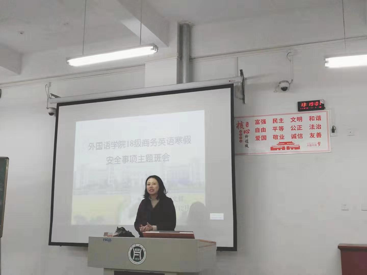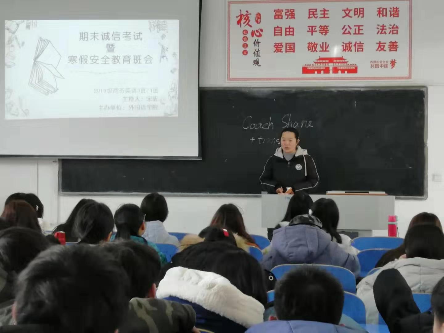 为严肃考风考纪,进一步增强同学们的诚信意识,做好寒假安全教育工作,外国语学院于2019年12月26、27日分班级召开了诚信考试动员会暨寒假安全主题教育班会。