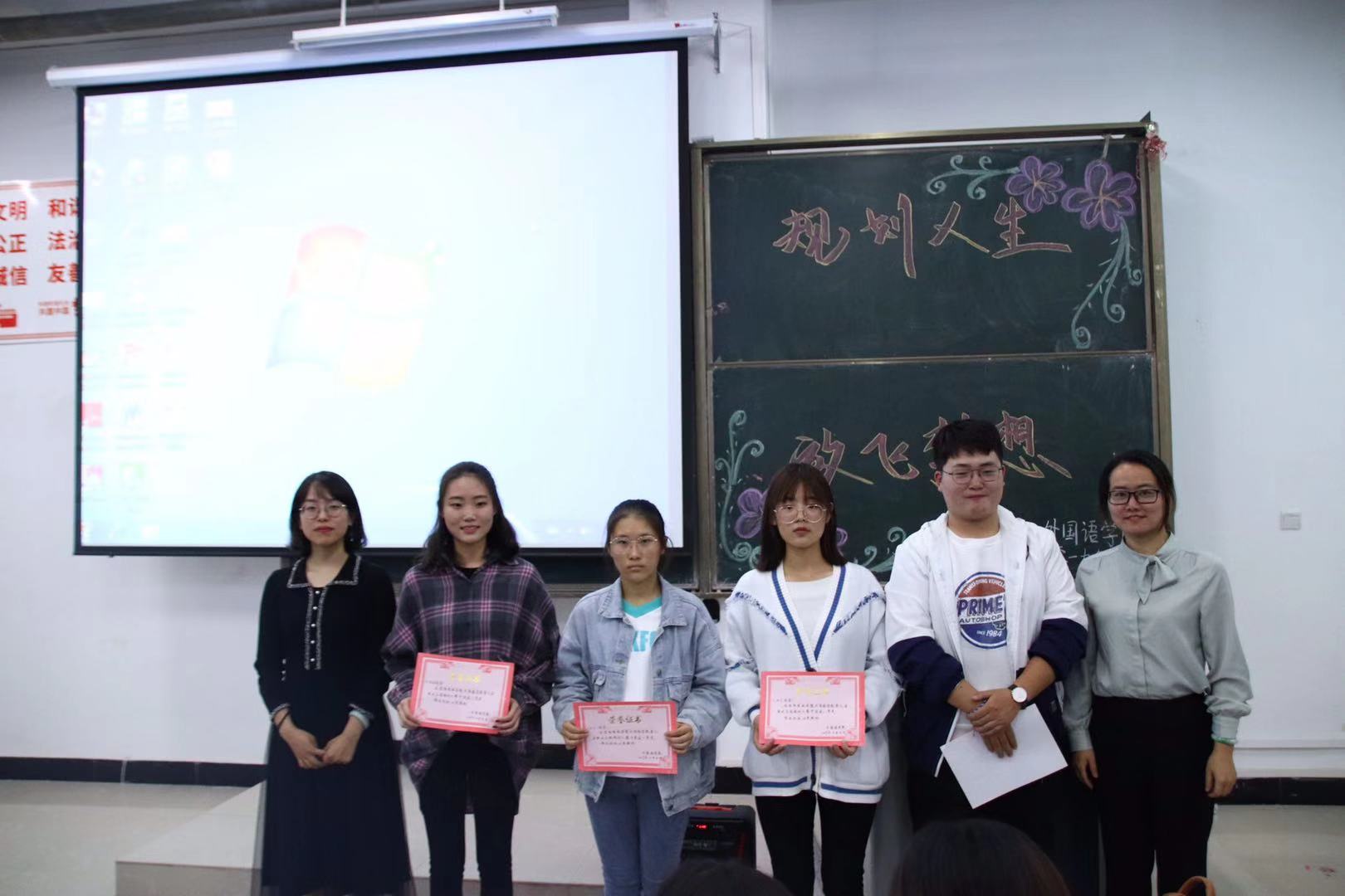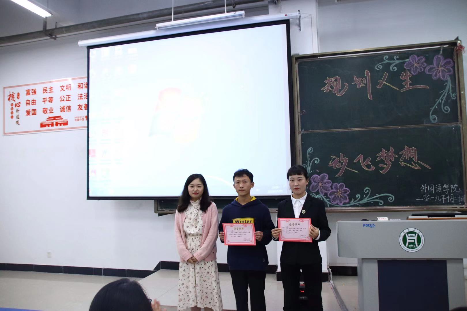 为进一步提升大学生职业生涯规划意识,引导大学生用科学的态度和方法规划自己的职业意向,10月20日晚,外国语学院于一教E201举办了以“规划人生,放飞梦想”为主题的大学生职业生涯规划大赛初赛。我院团总支书记范琼琼、辅导员朱俊梵、韩江霞、高宇、学生干部代表及全体大一新生参加。