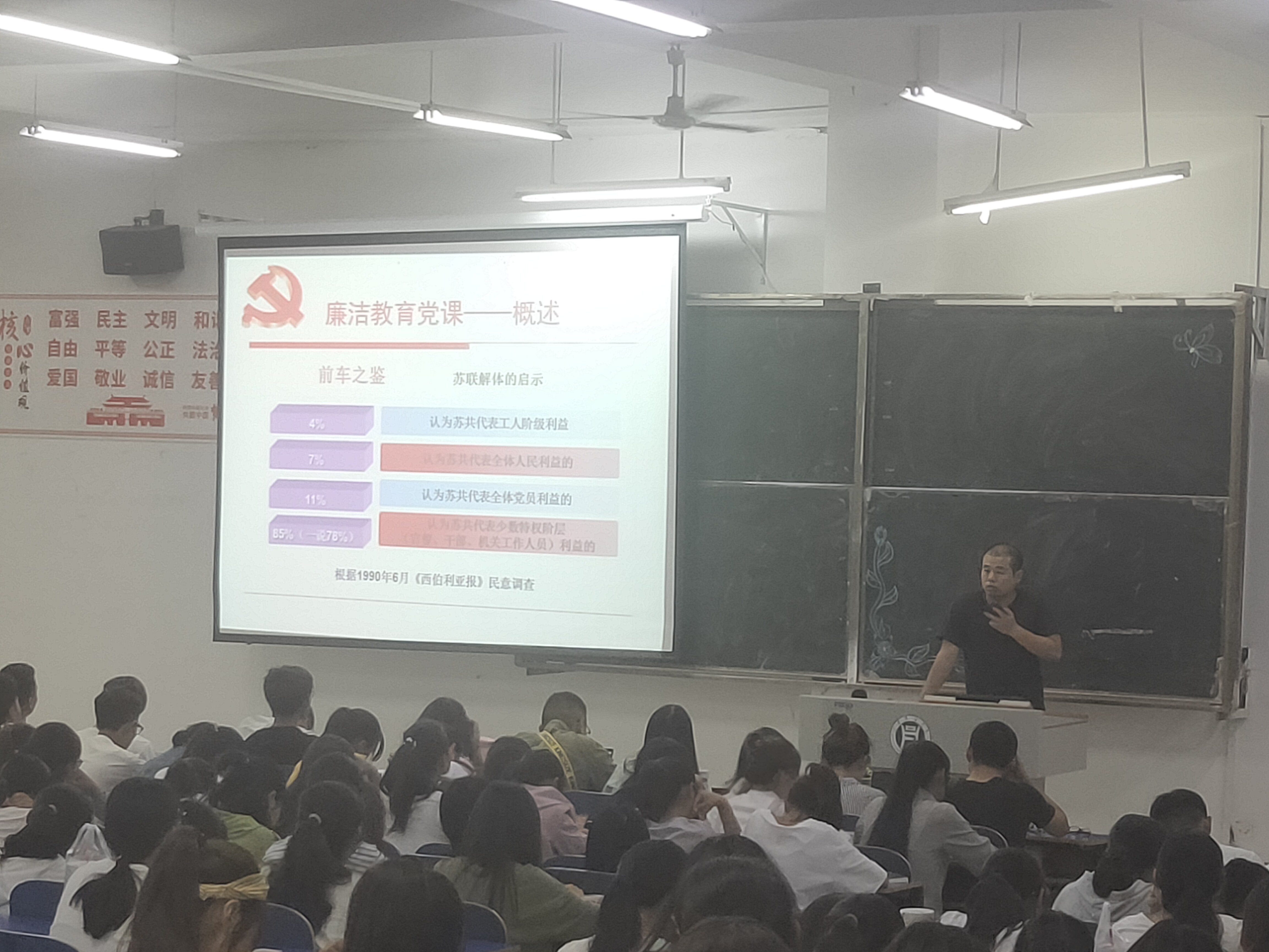 新生廉洁教育是大学生廉洁思想教育培育的起点,是一项十分重要的基础性工作。为切实提高大学生廉洁素养及道德自律意识,培养廉洁自律的思想品质,9月29日,外国语学院于E102开展了廉洁教育主题学习会。2019级新生辅导员及全体新生参加了本次学习会,会议由学院党总支纪检委员闫达主持。