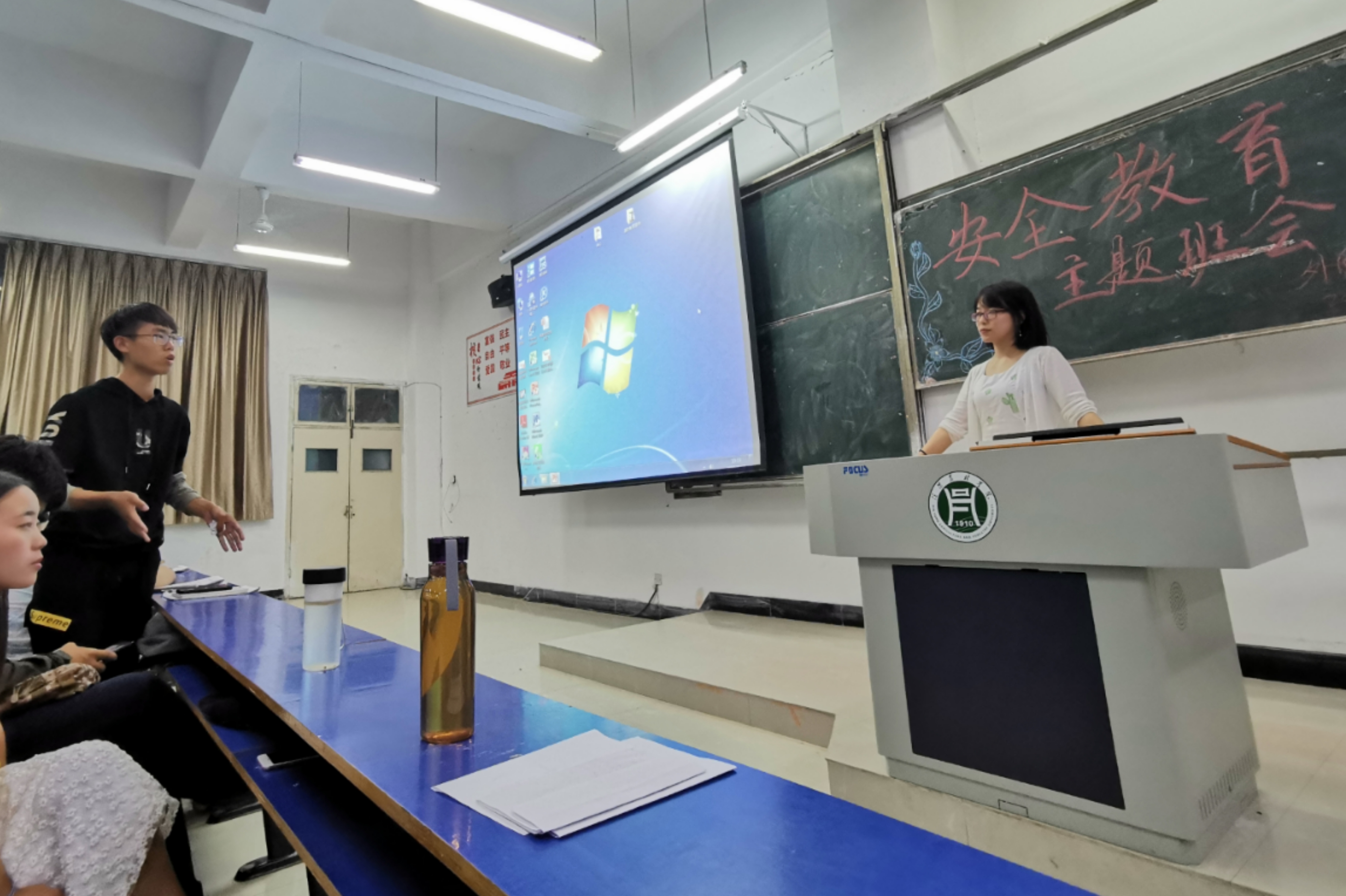 会上,各班辅导员和同学们展开互动,对“校园安全”这一主题发表自己的想法和见解。同学们踊跃发言、各抒己见,结合身边事例,自我思考,自我剖析,谈到了身边许多安全隐患、可能带来的后果以及对此应采取的措施。来自2019级翻译3班的王钰森分享了自己参加应急疏散演练的经验和心得,希望大家都能掌握正确的应急逃生方法。随后,各班辅导员从交通安全、财产安全、消防安全、宿舍安全、水电安全、食品安全等方面进行总结和建议,希望大家在十一假期和以后的学习生活中提高自我安全意识和自我保护能力,保护自己的人身安全和财产安全。此次主题班会的召开,不少同学意识到自己安全防范能力的不足,认识到了安全教育的重要性。我们应珍惜生命、注意安全,掌握基本的安全常识和自救意识,努力构建和谐安全的校园环境。(外国语学院)